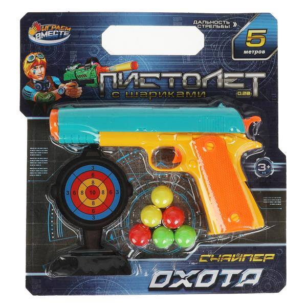 Пистолет "Снайпер охота" с шариками ТМ "Играем вместе" непременно понравится юному герою: - яркий дизайн - удобно держать в руках - 6 шариков С этим игровым оружием ваш ребёнок будет придумывать увлекательные спецзадания, защищать мир и стоять на страже порядка. С таким пистолетом маленький герой станет самым метким стрелком. Набор подойдёт для активных игр на воздухе и в помещении. Игры с оружием ТМ "Играем вместе" помогут развить: - координацию движений - воображение - ловкость и меткость - внимание - моторику Размер: 20 х 15 х 4 см. Материал: пластмасса. Рекомендовано детям от 3-х лет.