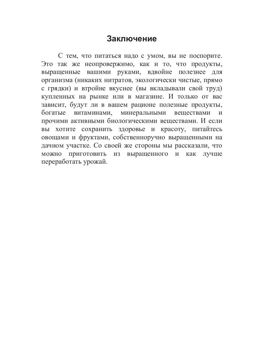 Известно ли вам, сколько великолепных блюд можно приготовить из овощей, ягод и фруктов, выращенных на дачном участке? Множество! Предлагаемые рецепты достаточно просты и не требуют специальных кулинарных навыков. Это издание содержит сведения о разнообразных фруктово-овощных диетах, специальных лечебных диетах для людей, страдающих сердечно-сосудистыми заболеваниями, болезнями желудочно-кишечного тракта, желчного пузыря, органов дыхания и т. д. В книге вы найдете много полезной информации о том, какие овощи, ягоды, фрукты полезнее других и почему, как любимый всеми картофель был завезен в нашу страну и к каким семействам относятся томат, огурец, морковь, капуста. Словом, вы узнаете все о растениях, произрастающих на вашем дачном участке.| Издательство | Т8 RUGRAM |