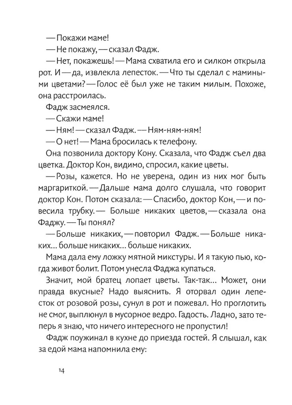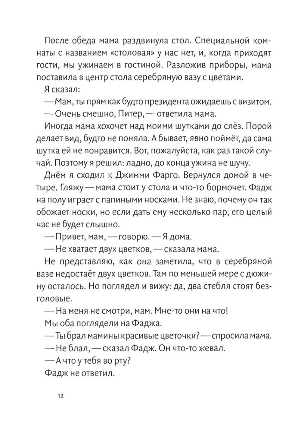 «Моя самая большая проблема - младший брат», - признаётся Питер Хэтчер. Ничего удивительного: Питер уже в четвёртом классе, а его брату, которого в семье ласково называют Фадж, пока только два с половиной года. И это не брат, а сущее наказание! Нет, просто катастрофа! Фадж везде лезет, всё тянет в рот и пробует на зуб, всё портит, закатывает истерики, и при этом ему всё сходит с рук! Ну, почти всё. Во всяком случае, с Питером никто так не носится - ни мама, ни папа. Ведь он - Питер Обыкновенный! Умение с неподражаемым юмором говорить для школьников о вещах вполне серьёзных - признак настоящего мастера. Американка Джуди Блум и есть такой мастер. В 2000 году Библиотека Конгресса США включила писательницу в «список живых легенд». Блум удостоена около сотни литературных наград, а её книги переведены на тридцать с лишним языков мира. Рекомендуем эту смешную книгу про отношения старшего и младшего брата, про семью для детей 6-10 лет.| Издательство | Волчок |