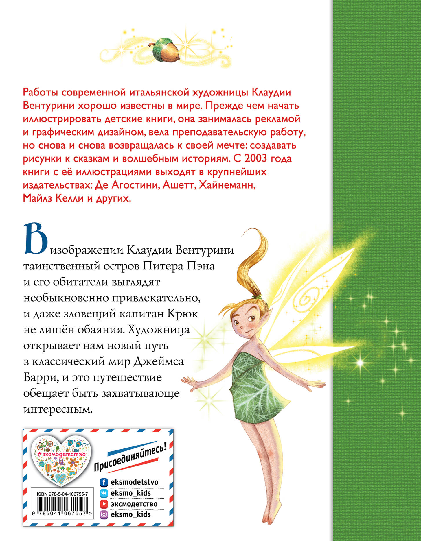 Больше 100 лет назад английский драматург Джеймс Барри написал увлекательную и романтическую сказку о чудесной стране Нигделандии и о Питере Пэне - мальчике, который не хотел взрослеть. Каждый ребёнок хоть раз побывал в Нигделандии, даже если совсем не помнит этого. Но открыв книгу Д. Барри «Питер Пэн», многие узнают весёлого и отважного мальчика в одежде из листьев, который однажды вечером влетел в открытое окно и поманил за собой… Возможно, именно детские воспоминания вдохновили итальянскую художницу Клаудию Вентурини на создание иллюстраций к классической сказке. Чудесный остров и его обитатели, Питер Пэн, его друзья и недруги приглашают нас со страниц этой книги вновь посетить Нигделандию. Поверьте, это путешествие будет захватывающе интересным!| Издательство | ООО "Издательство "Эксмо" |