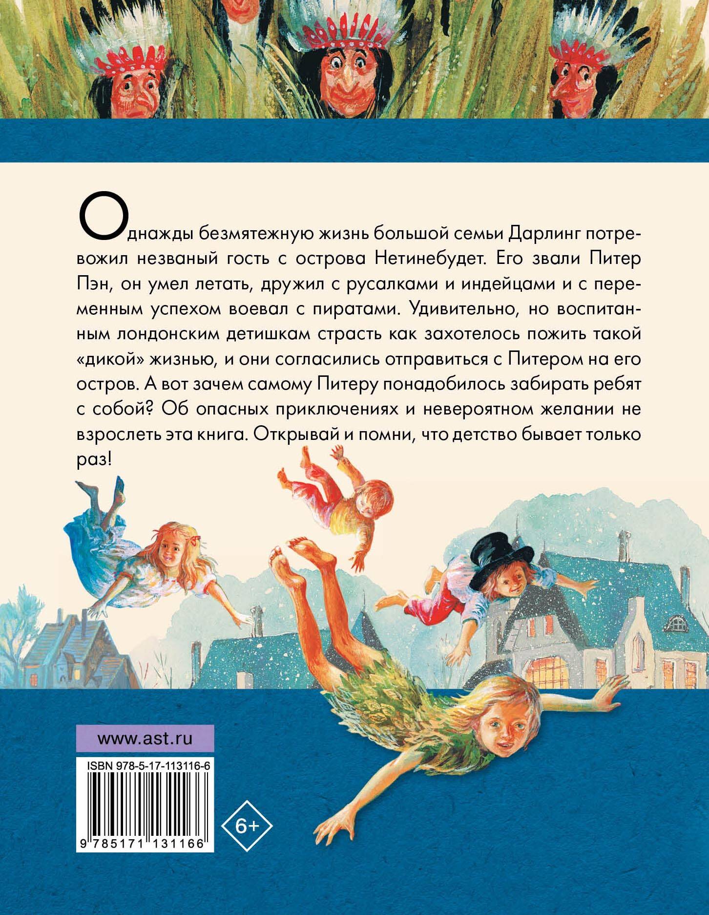 Однажды безмятежную жизнь большой семьи Дарлинг потревожил незваный гость Нетинебудет. Его звали Питер Пэн, он умел летать, дружил с русалками и индейцами и с переменным успезом воевал с пиратами. Удивительно, но воспитанным лондонским детишкам страсть как захотелось пожить такой «дикой» жизнью, и они согласились отправиться с Питером на его остров. А вот зачем самому Питеру понадобилось забирать ребят с собой? Об опасных приключениях и невероятном желании не взрослеть эта книга. Открывай и помни, что детство бывает только раз!| Издательство | Издательство "АСТ" |