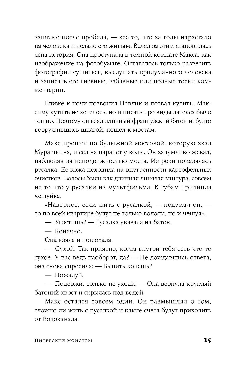 «Питерские монстры» - сказки для взрослых, которые только притворяются взрослыми. Это истории о друзьях, живущих в Петербурге и изредка угоняющих трамваи. Кто-то держит магазин неизданных, а иногда и недописанных книг, кто-то знаком со всеми каменными львами, а кто-то - древний монстр, способный защитить от дождя. Почти все монстры Петербурга внешне неотличимы от людей. Впрочем, как и в обычной жизни. В этой истории много приключений, тайн, любви, юмора и легенд, рассказанных самим городом.| Издательство | Альпина |