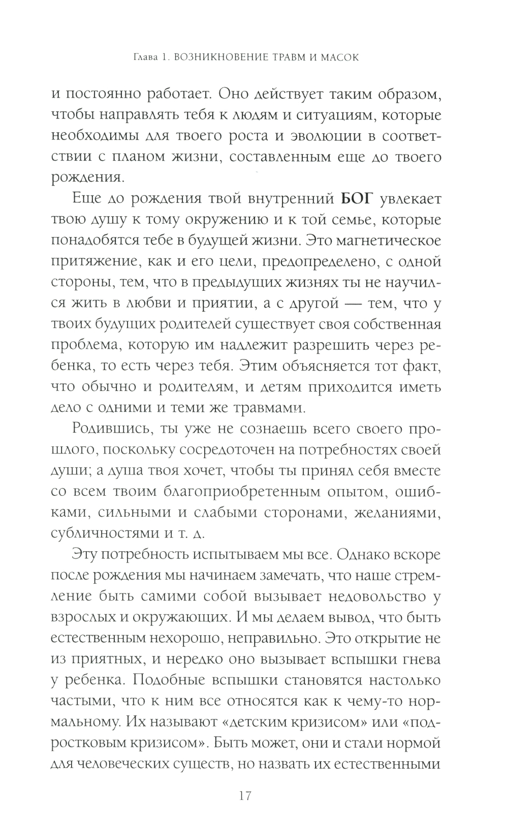 В этой книге Лиз Бурбо говорит о личной ответственности каждого человека, - ответственности не перед кем-то, а перед самим собой, перед своей душой, перед собственным здоровьем. Всякую душевную травму, нанесенную кому бы то ни было, ты неминуемо наносишь себе. И надолго. Так что страдания передаются из поколения в поколение. Из детских травм, из привычных страданий вырастают страдания массовые, всеобщие, и принимают форму социальных, государственных, мировых кризисов. Предательство, несправедливость, унижение, муки отвергнутой, покинутой души -- это, как показывает Бурбо, глубоко личные травмы; но разве не они составляют основу, если не сущность, всех человеческих страданий? Получается, что незачем жаловаться на кого-то или что-то, незачем ловить и карать злодеев, поскольку закоренелый злодей - он же мученик - сидит в каждом из нас. Можно ли и каким образом освободить его и от страданий, и от злодейства? Найди ответ в этой книге и воспользуйся им!| Издательство | София |