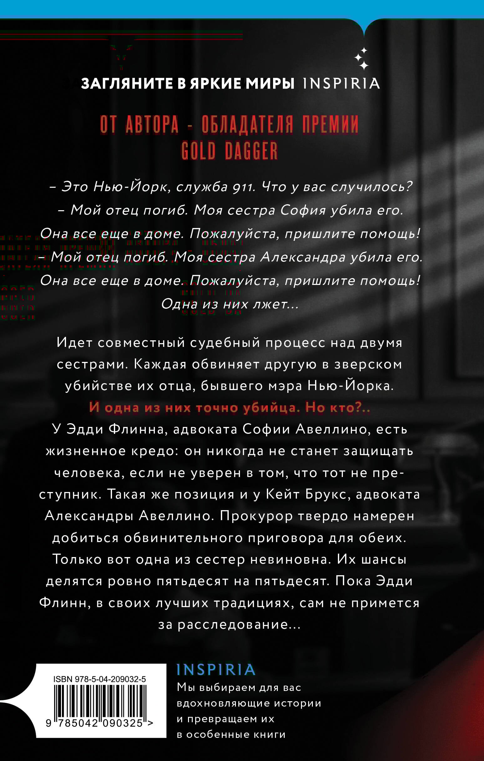 НАЦИОНАЛЬНЫЙ БЕСТСЕЛЛЕР БРИТАНИИ. ОТ АВТОРА - ОБЛАДАТЕЛЯ ПРЕМИИ GOLD DAGGER. - Это Нью-Йорк, служба 911. Что у вас случилось? - Мой отец погиб. Моя сестра София убила его. Она все еще в доме. Пожалуйста, пришлите помощь! - Мой отец погиб. Моя сестра Александра убила его. Она все еще в доме. Пожалуйста, пришлите помощь! Одна из них лжет… Идет совместный судебный процесс над двумя сестрами. Каждая обвиняет другую в зверском убийстве их отца, бывшего мэра Нью-Йорка. И одна из них точно убийца. Но кто?.. У Эдди Флинна, адвоката Софии Авеллино, есть жизненное кредо: он никогда не станет защищать человека, если не уверен в том, что тот не преступник. Такая же позиция и у Кейт Брукс, адвоката Александры Авеллино. Прокурор твердо намерен добиться обвинительного приговора для обеих. Только вот одна из сестер невиновна. Их шансы делятся ровно пятьдесят на пятьдесят. Пока Эдди Флинн, в своих лучших традициях, сам не примется за расследование… ___________________________________________________________ «Это мастер-класс по введению в заблуждение и сокрытию информации, с непревзойденными сценами в зале суда. Пристегните ремни и читайте не отрываясь». - The Guardian «Стив Кавана возрождает юридический триллер». - Financial Times «Достойно великого Джона Гришэма». - The Times «Потрясающий писатель. У него подлинный талант ярко гореть». - Дон Уинслоу «Поверьте мне: вы будете гадать, кто виновен, до самого конца». - Иэн Рэнкин «Непредсказуемо, очень смело и совершенно захватывающе. Первоклассный роман». - Алекс Норт «Настолько классные книги появляются очень редко». - Майкл Коннелли «Выдающаяся вещь». - Ли Чайлд| Издательство | ООО "Издательство "Эксмо" |