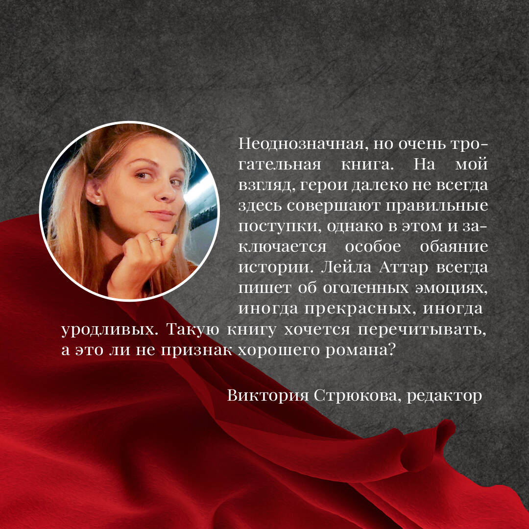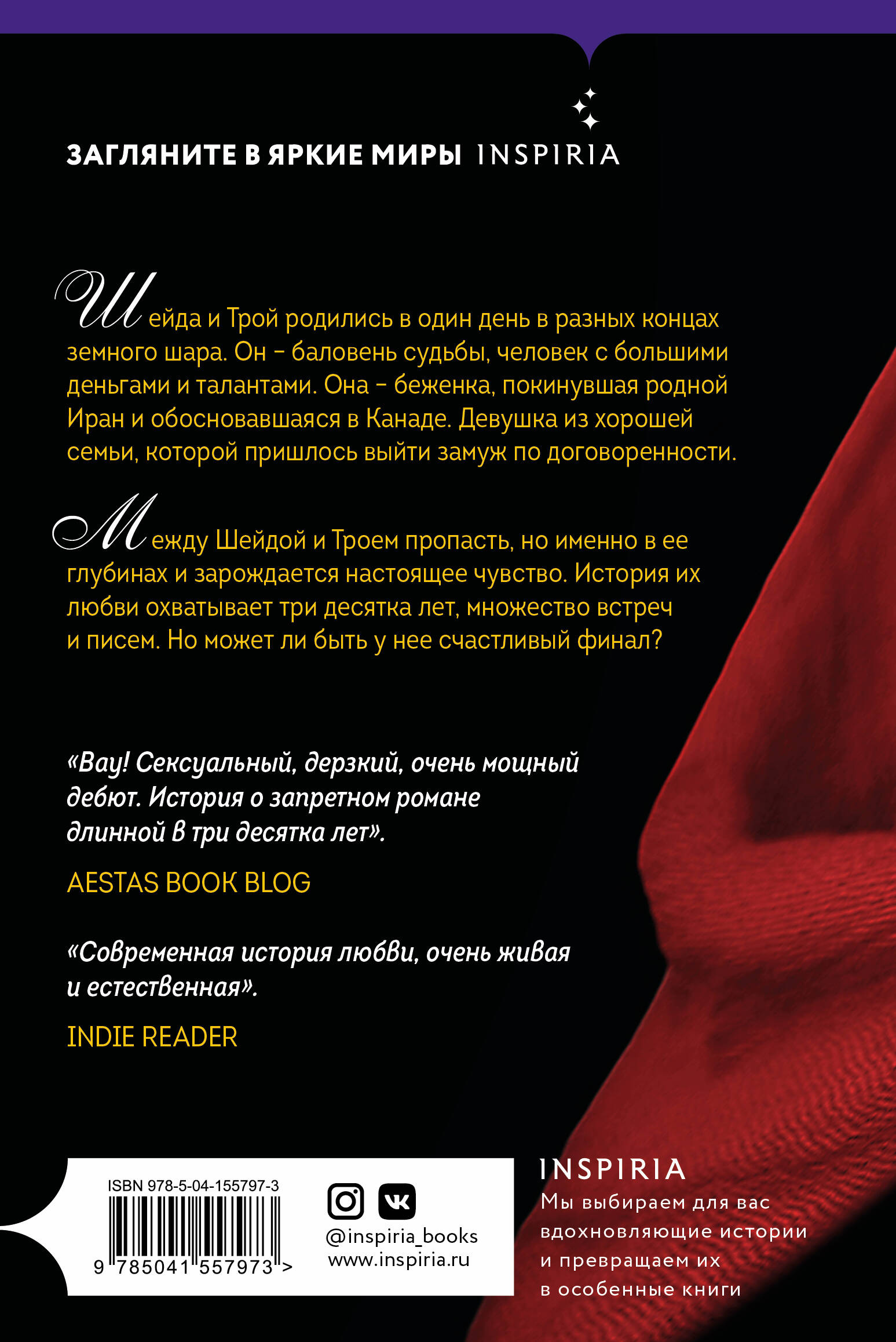 Шейда и Трой родились в один день в разных концах земного шара. Он - баловень судьбы, человек с большими деньгами и талантами. Она - беженка, покинувшая родной Иран и обосновавшаяся в Канаде. Девушка из хорошей семьи, которой пришлось выйти замуж по договоренности. Между Шейдой и Троем пропасть, но именно в ее глубинах и зарождается настоящее чувство. История их любви охватывает три десятка лет, множество встреч и писем. Но может ли быть у нее счастливый финал? «Вау! Сексуальный, дерзкий, очень мощный дебют. История о запретном романе длиной в три десятка лет». - Aestas Book Blog «Современная история любви, очень живая и естественная». - Indie Reader «Романтическая проза с двойным дном… сюжет то и дело удивляет». - Kirkus Review Лейла Аттар - автор бестселлера «Бумажный лебедь», который после релиза моментально занял верхние строчки в рейтингах The New York Times, USA Today, The Wall Street Journal. Лейла Аттар пишет истории о любви - психологичные, многогранные, с неожиданными сюжетными поворотами. Это ее главное хобби. Порой Лейла пропадает в пучине Интернета, откуда, впрочем, ее всегда можно выманить шоколадкой. «Пятьдесят три письма моему любимому» - дебютный роман Лейлы Аттар, который принес ей международную известность.