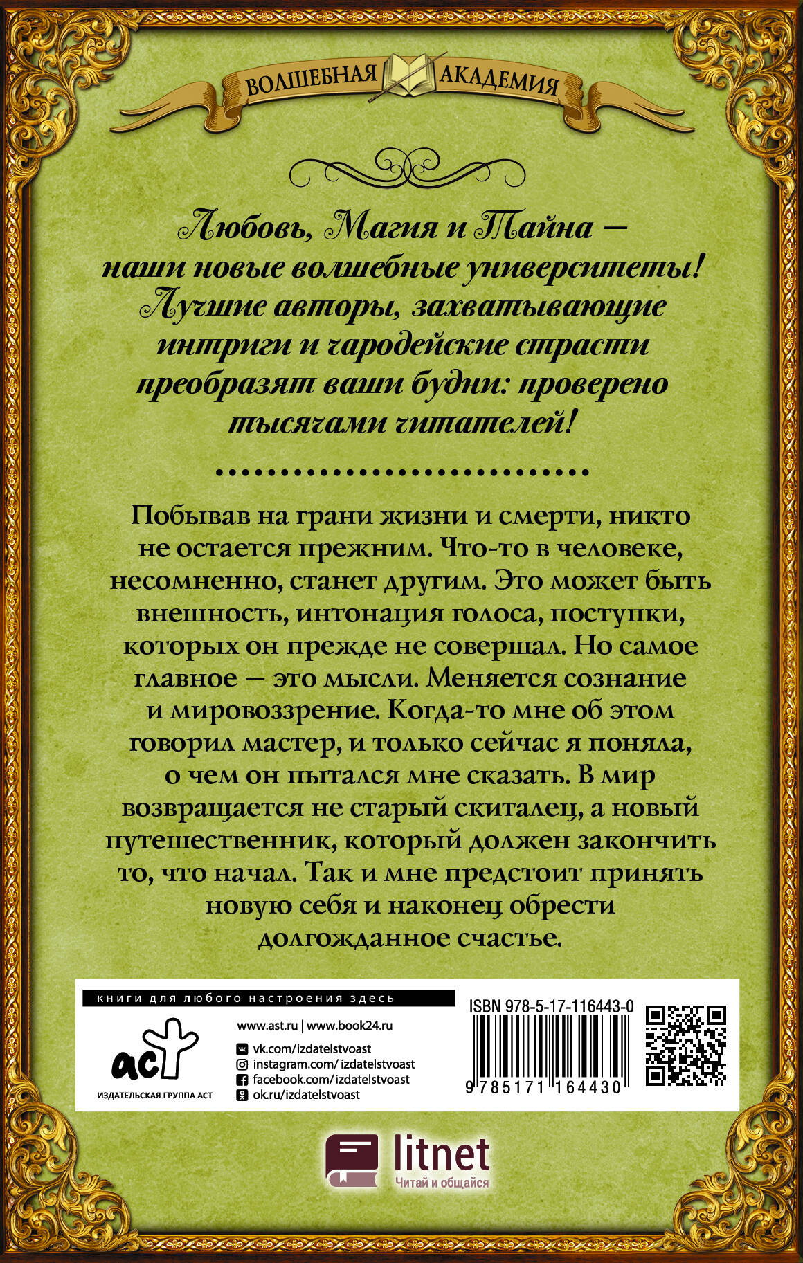 Побывав на грани жизни и смерти, никто не остается прежним. Что-то в человеке, несомненно, станет другим. Это может быть внешность, интонация голоса, поступки, которых он прежде не совершал. Но самое главное - это мысли. Меняется сознание и мировоззрение. Когда-то мне об этом говорил мастер, и только сейчас я поняла, о чем он пытался мне сказать. В мир возвращается не старый скиталец, а новый путешественник, который должен закончить то, что начал. Так и мне предстоит принять новую себя и наконец обрести долгожданное счастье.| Издательство | ИЗДАТЕЛЬСТВО "АСТ" |
