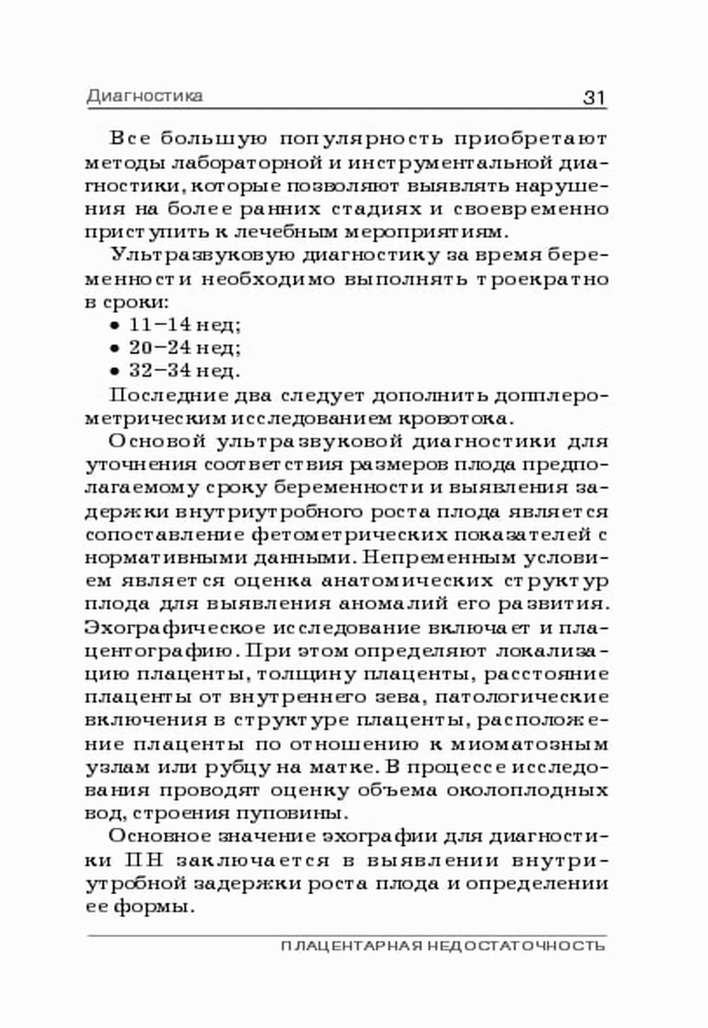 Книга содержит методические рекомендации, разъяснения и дополнения по основным вопросам диагностики и лечения плацентарной недостаточности и адресована практикующим врачам,а также аспирантам, ординаторам и интернам, обучающимся по специальности "Акушерство и гинекология". При ее подготовке проанализированы результаты последних научно-исследовательских работ по рассматриваемой тематике.