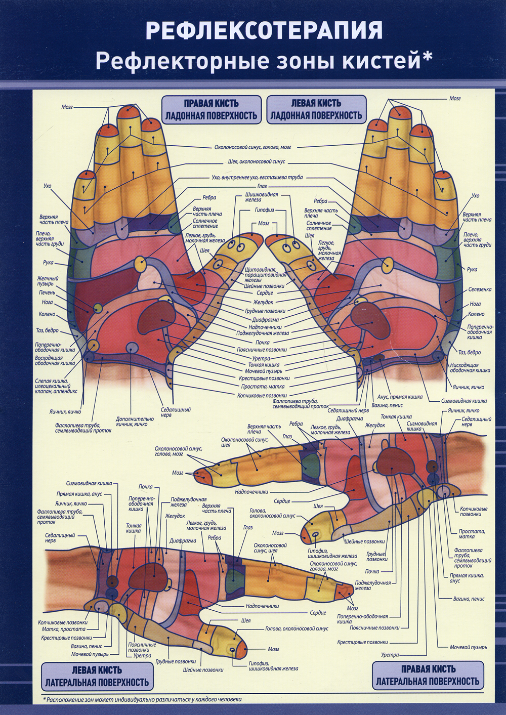 Предлагаем вашему вниманию плакат "Рефлексотерапия. Рефлекторные зоны кистей".| Издательство | Наука и техника |