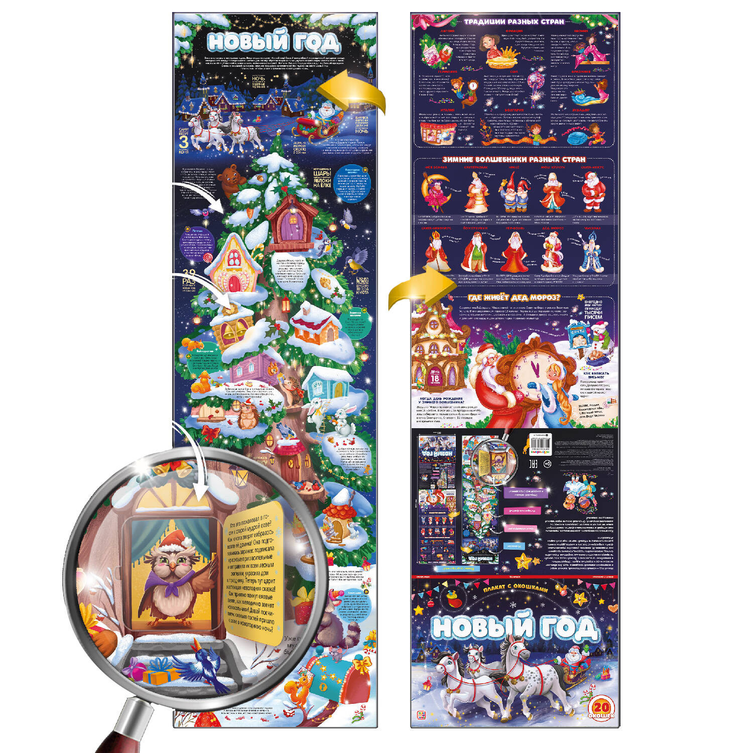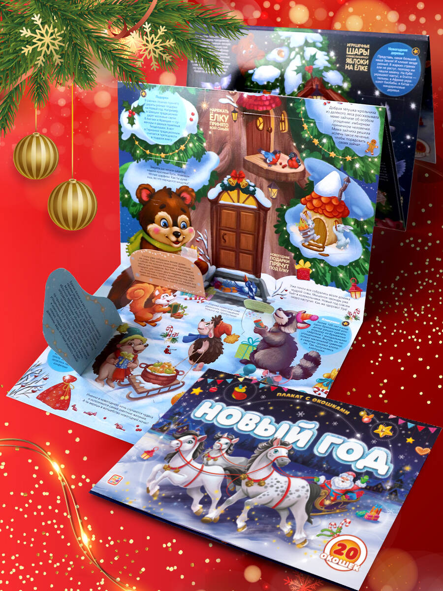 Серия "Плакат с окошками" от торговой марки Malamalama - новая форма с любимым содержанием. Это книжка-трансформер, которая развернётся в плакат и станет отличным украшением дома. Плакат с окошками "Новый год" - это чудесная возможность погрузиться в радостную атмосферу ожидания праздника. Книжка расскажет о том, как добрые лесные зверята украшают домики, готовят подарки и угощение, загадывают желания, веселятся, играют и встречают Дедушку Мороза. Вместе с ними ребёнок поверит, что под Новый год возможны любые чудеса. Переверните плакат - и малыш отправится в предновогоднее путешествие вокруг света, узнает множество интересных фактов о праздничных традициях народов мира и познакомится с зимними волшебниками разных стран. А красочные иллюстрации помогут расширить кругозор и создадут сказочное настроение.| Издательство | АЛЬ ПАКО ООО |