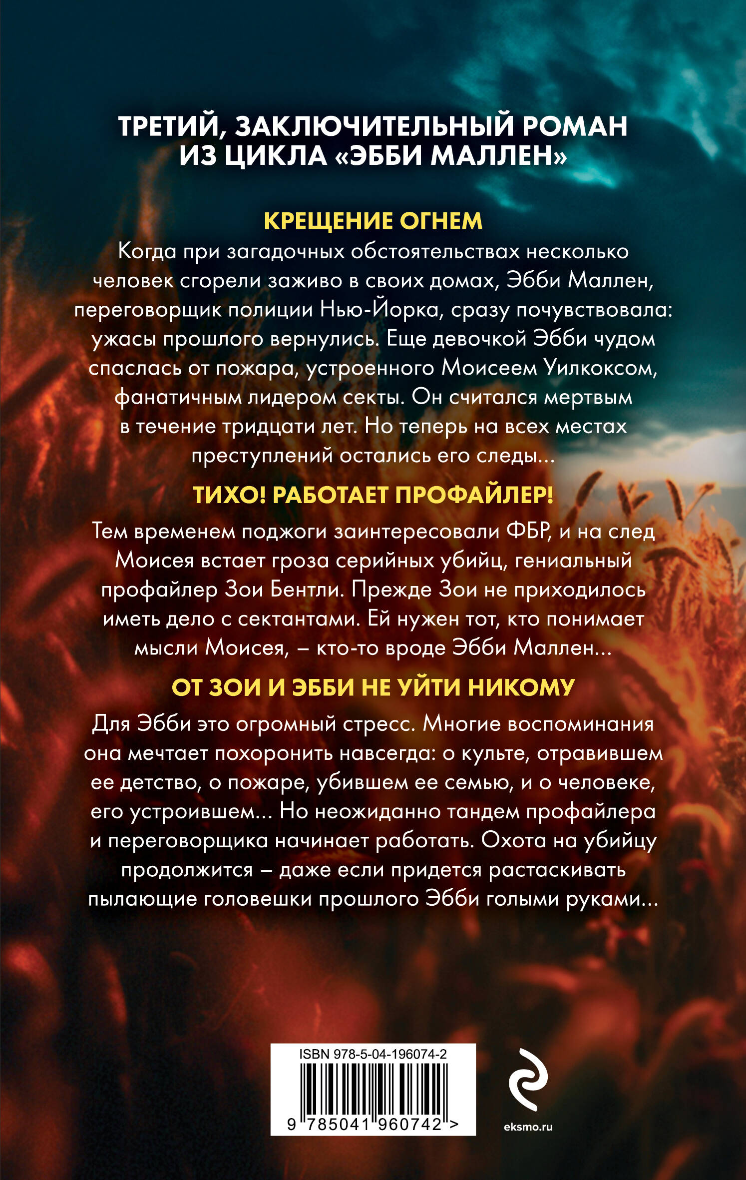 ОТ АВТОРА СУПЕРБЕСТСЕЛЛЕРА «ВНУТРИ УБИЙЦЫ». ТРЕТИЙ, ЗАКЛЮЧИТЕЛЬНЫЙ РОМАН ИЗ ЦИКЛА «ЭББИ МАЛЛЕН». ЗОИ БЕНТЛИ ВОЗВРАЩАЕТСЯ! КРЕЩЕНИЕ ОГНЕМ Когда при загадочных обстоятельствах несколько человек сгорели заживо в своих домах, Эбби Маллен, переговорщик полиции Нью-Йорка, сразу почувствовала: ужасы прошлого вернулись. Еще девочкой Эбби чудом спаслась от пожара, устроенного Моисеем Уилкоксом, фанатичным лидером секты. Он считался мертвым в течение тридцати лет. Но теперь на всех местах преступлений остались его следы… ТИХО! РАБОТАЕТ ПРОФАЙЛЕР! Тем временем поджоги заинтересовали ФБР, и на след Моисея встает гроза серийных убийц, гениальный профайлер Зои Бентли. Прежде Зои не приходилось иметь дела с сектантами. Ей нужен тот, кто понимает мысли Моисея, - кто-то вроде Эбби Маллен… ОТ ЗОИ И ЭББИ НЕ УЙТИ НИКОМУ Для Эбби это огромный стресс. Многие воспоминания она мечтает похоронить навсегда: о культе, отравившем ее детство, о пожаре, убившем ее семью, и о человеке, его устроившем… Но неожиданно тандем профайлера и переговорщика начинает работать. Охота на убийцу продолжится - даже если придется растаскивать пылающие головешки прошлого Эбби голыми руками…| Издательство | ООО "Издательство "Эксмо" |