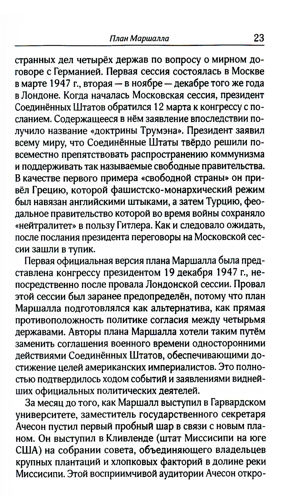 Хотите узнать правду о плане Маршалла и его влиянии на современную международную политику? Что на самом деле стояло за намерением США оказать щедрую помощь Европе после Второй мировой войны? Читайте книгу «План Маршалла» и узнайте историю одной из самых громких внешнеполитических акций Америки в XX веке. Какие ключевые факторы позволили реализовать этот план и какие препятствия пришлось преодолеть? Кто критиковал американскую инициативу, а кто усиленно формировал о ней позитивное общественное мнение? Как США повлияли на экономическую политику европейских стран в середине XX века? Почему СССР отказался присоединиться к этой программе и к чему в итоге это решение привело? В своей книге Джеймс Аллен на богатом фактическом материале исследует проблемы экономического суверенитета Европы и даёт ключ к пониманию современных международных отношений. Издание рекомендуется всем любителям геостратегии, всемирной истории и дипломатии, особенно полезным оно будет для преподавателей ВУЗов и руководителей внешнеполитических и силовых ведомств.