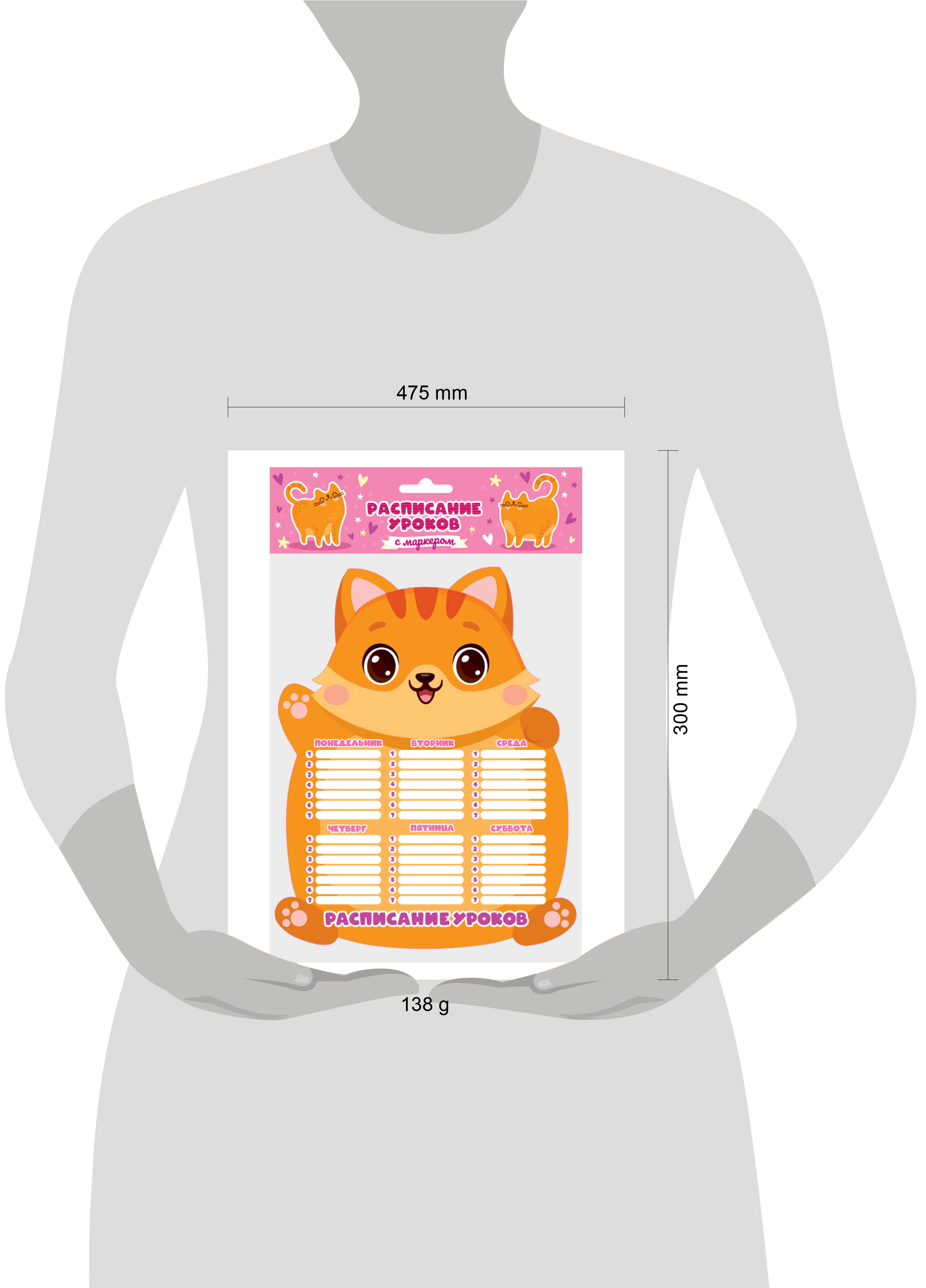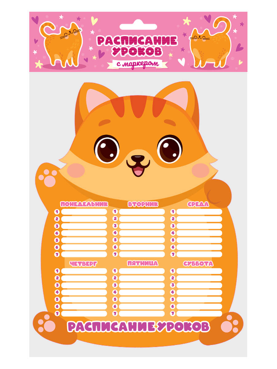 Планер магнитный РАСПИСАНИЕ УРОКОВ с маркером. МИЛЫЙ КОТИК