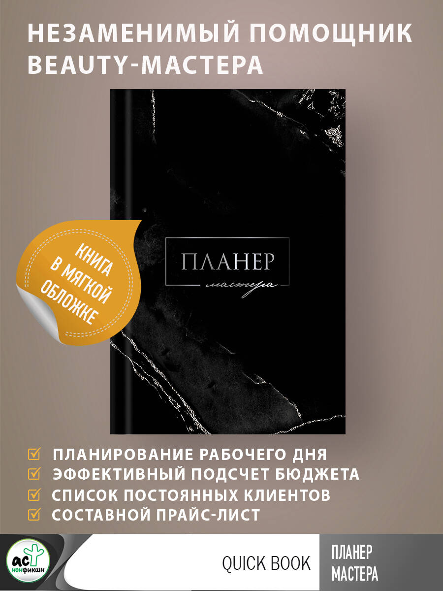 Этот планер - незаменимый помощник для beauty-мастеров, ведь в нем есть: • Планирование рабочего дня • Эффективный подсчет своего бюджета • Ведение списка закупок расходных материалов • Удобное составление прайс-листа beauty-услуг • Список постоянных клиентов| Издательство | Издательство "АСТ" |