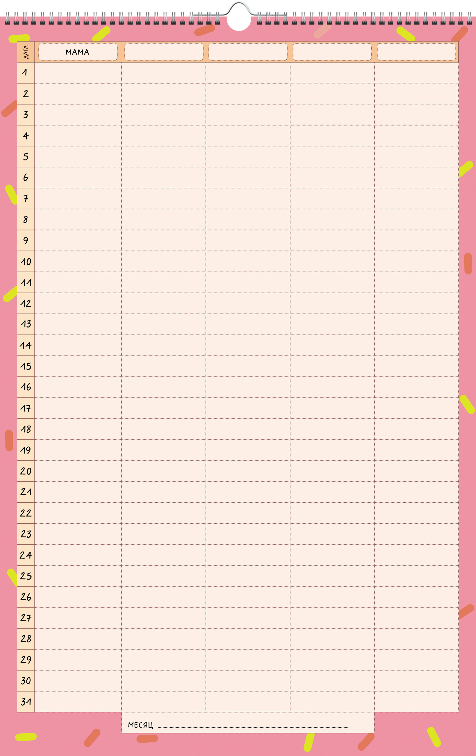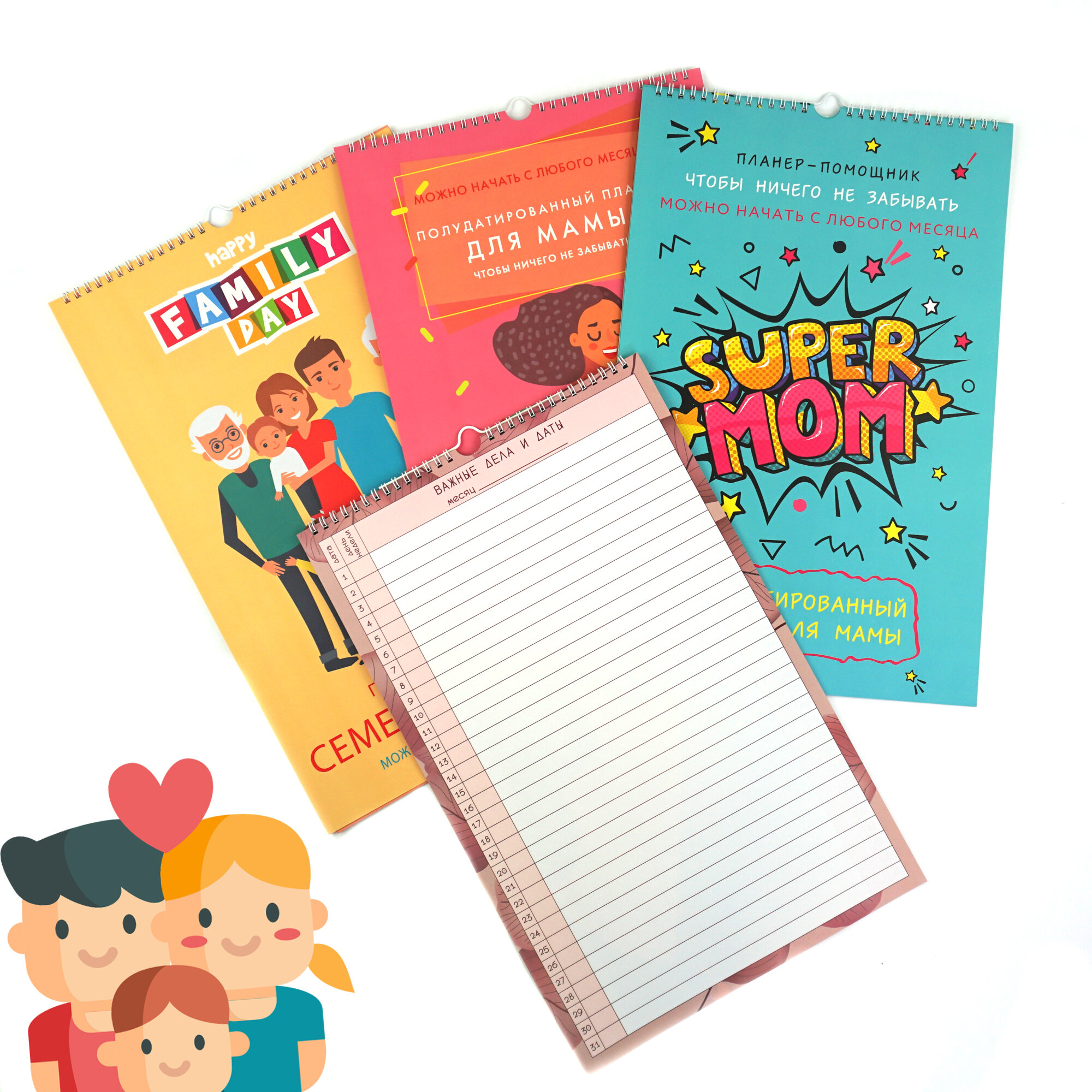 Настенный планер "For mum" создан специально для идеальной мамы! Он отличный помощник в повседневной жизни, ведь удобный формат планера помогает видеть все семейные дела и ничего не забыть. Планер не привязан к году и месяцу, а значит начать работу с ним можно в любое время.