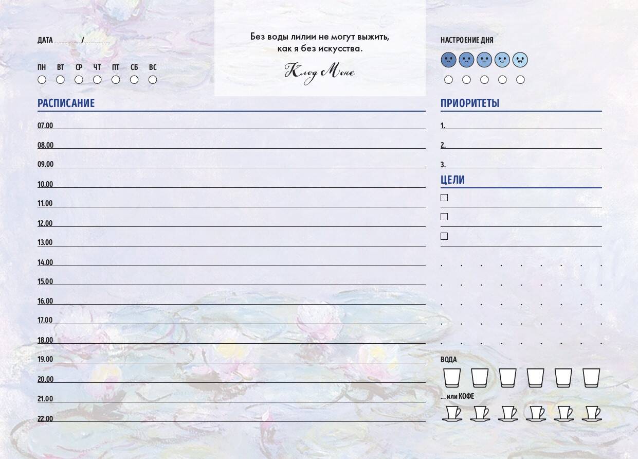 Аннотация: Планер настольный с отрывными листами. Клод Моне (24х17 см, 48 л.)
