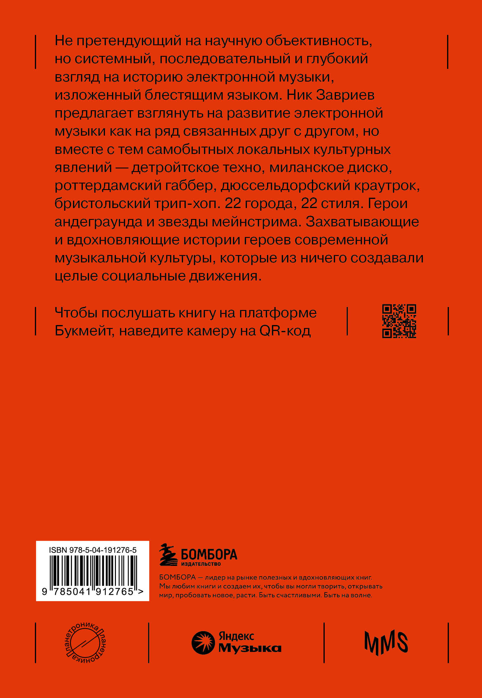 Полное погружение в историю электронной музыки! Ник Завриев предлагает взглянуть на развитие электронной музыки как на ряд связанных друг с другом, но вместе с тем самобытных локальных культурных явлений - детройтское техно, миланское диско, роттердамский габбер, дюссельдорфский краутрок, бристольский трип-хоп. 22 города, 22 стиля. Герои андеграунда и звезды мейнстрима. Захватывающие и вдохновляющие истории героев современной музыкальной культуры, которые из ничего создавали целые социальные движения. После прочтения этой книги вы точно не спутаете эмбиент с нью-эйджем и узнаете, как звучит оригинальное техно, узнаете, как появился первый синтезатор и как называется главная драм-машина электронной музыки. А также: - Как диско повлияло на звучание техно. - Когда рокеры и диджеи научились делать совместные проекты и почему они вообще к этому пришли. - Чем синти-поп отличается от электро и как он лег в основу всей современной музыки. - Как в СССР продвигали электронную музыку в условиях цензуры и что общего у терменвокса и Ленина. - С чего начинались музыкальные карьеры Давида Гетта и Daft Punk. И много другое! Истории можно читать в произвольном порядке, выбирая сначала те жанры и явления, которые вам более интересны. Также в книге есть ссылки на плейлисты по каждому описываемому направлению, а на Яндекс Музыке, партнере проекта, вы найдете одноименные выпуски подкаста «Планетроника». Об авторе: Ник Завриев - электронный музыкант, преподаватель Moscow Music School, лектор, музыкальный обозреватель изданий Zvuki.ru и Colta.ru. Книга «Планетроника: популярная история электронной музыки» входит в новую совместную серию «Бомборы» и Moscow Music School - школы современной музыки. Образовательный метод школы нацелен на решение прикладных задач, развитие творческого мышления, овладение современными звуковыми и световыми технологиями, музыкальными инструментами, приобретение навыков и знаний, необходимых для самостоятельной деятельности в условиях высококонкурентного музыкального рынка. Авторы книг серии - это преподаватели Moscow Music School: российские и зарубежные продюсеры, музыканты, звукоинженеры, состоявшиеся артисты, востребованные профессионалы и инсайдеры индустрии, готовые передать свой опыт новичкам.| Издательство | ООО "Издательство "Эксмо" |