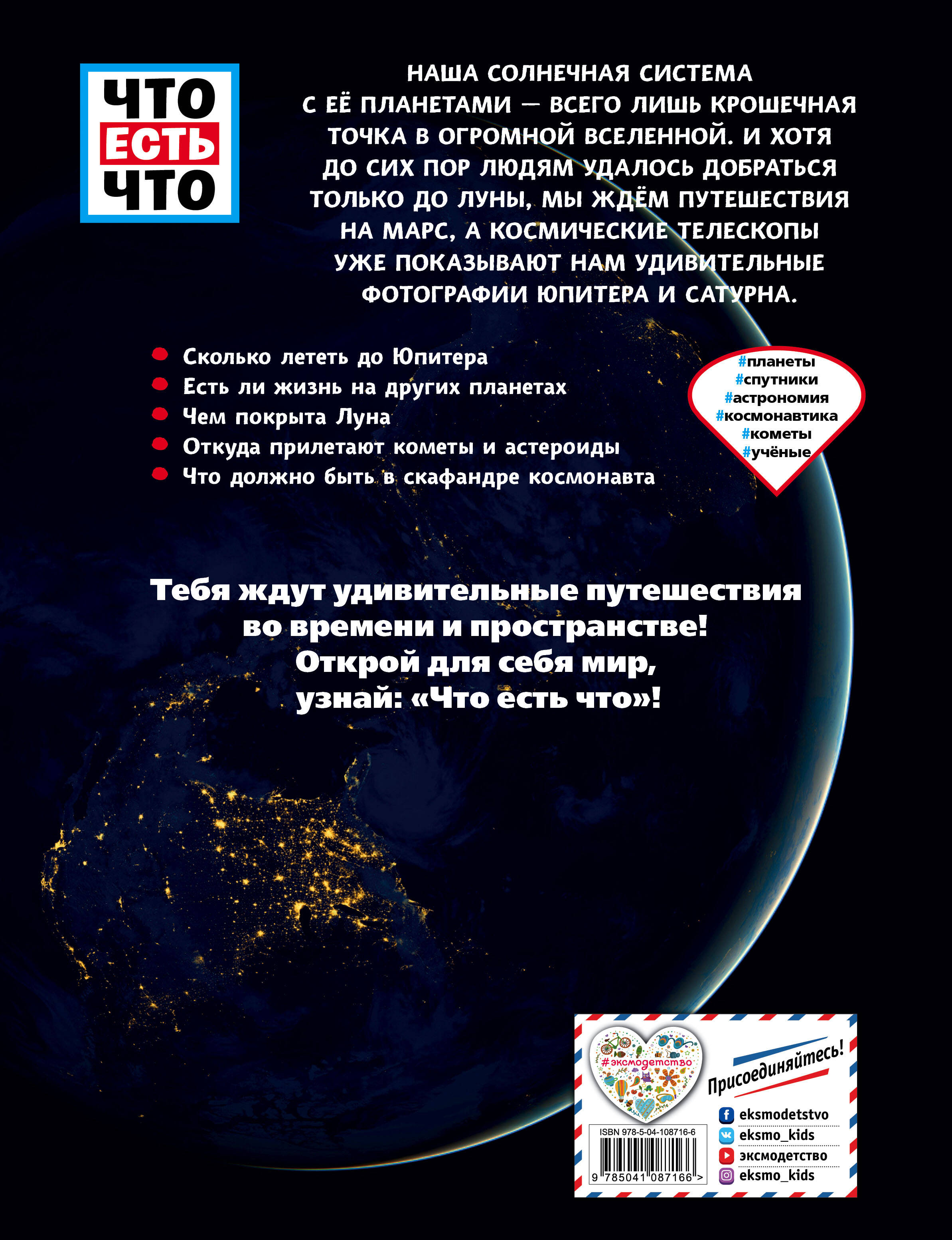 Наша Солнечная система с ее планетами - всего лишь крошечная точка в огромной Вселенной. И хотя до сих пор людям удалось добраться только до Луны, мы ждем путешествия на Марс, а космические телескопы уже показывают нам удивительные фотографии Юпитера и Сатурна. • Сколько лететь до Юпитера. • Есть ли жизнь на других планетах. • Чем покрыта Луна. • Откуда прилетают кометы и астероиды. • Что должно быть в скафандре космонавта. Интересная подача материала, чёткая структура, подходящий шрифт, объяснение сложных тем через игровые элементы, визуальные схемы, иллюстрации. Многочисленные факты, которые не сливаются в единый непонятный объем «ненужных знаний», а выстраиваются в головах учеников стройно и логично.