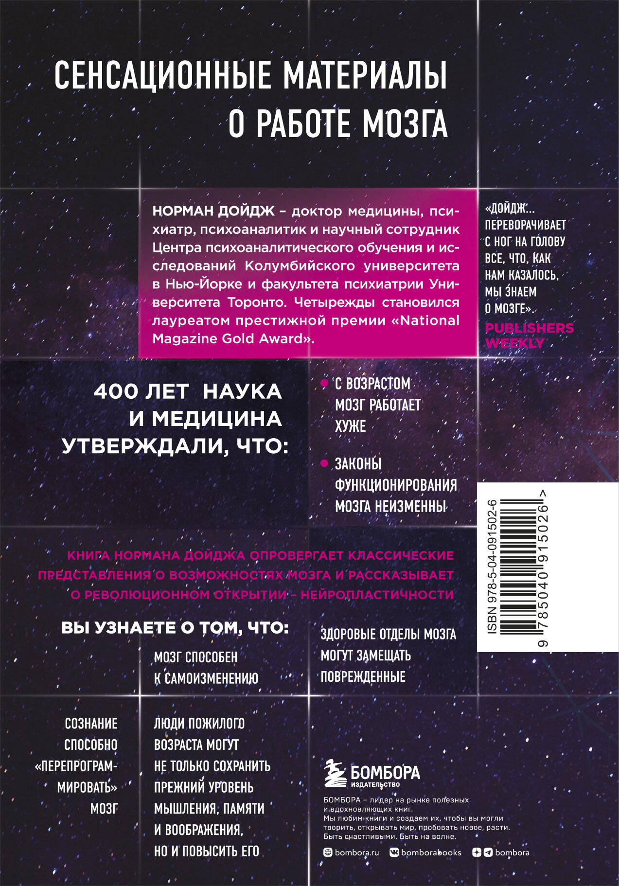 Эта книга рассказывает о революционном открытии в области изучения человеческого мозга, доказывающем его способность к самоизменению. В ней представлены истории об ученых, врачах и пациентах, которые смогли добиться удивительных трансформаций. Всем им удалось, без оперативного вмешательства или применения медикаментов, использовать ранее неизвестную способность мозга к изменениям. Открытие того, что мозг способен менять собственную структуру и функционирование благодаря мыслям и действиям человека, самое важное нововведение в наших представлениях о человеческом мозге, начиная с тех пор, как впервые была обрисована в общих чертах его анатомия и работа его основной структурной единицы - нейрона. Это - революция! И она будет иметь принципиально важные последствия. Эта книга одной из первых познакомила читателей с открывшимися возможностями мозга.| Издательство | ООО "Издательство "Эксмо" |