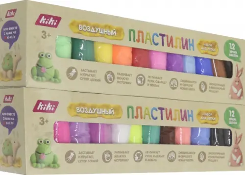 Особенностью воздушного пластилина является суперлегкий вес и необычная текстура: он создан специально для детских пальчиков и легко поддается лепке, после высыхания полностью застывает и сохраняет форму фигурки. Не пачкает одежду, руки и мебель, не крошится и не тонет в воде.