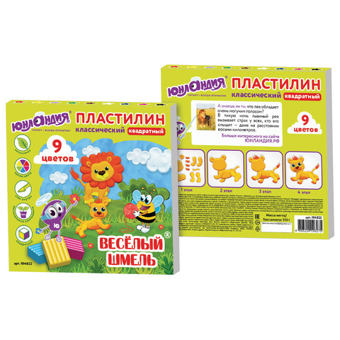 Пластилин классический "Юнландия", квадратные, 9 цветов, 153 грамма (арт. 84)