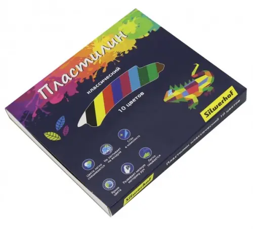Пластилин - распространённый материал для детского творчества. Работа с ним позволяет развивать мелкую моторику рук и творческие навыки ребенка. Пластилин Silwerhof не засыхает на воздухе, не крошится, не оставляет жирных цветов, хорошо разминается и легко отчищается после использования. Цвета легко смешиваются между собой, а для точного отделения кусочка необходимого размера от бруска в набор входит стек. В наборе 10 брусков по 20 грамм, в плотной картонной подложке.