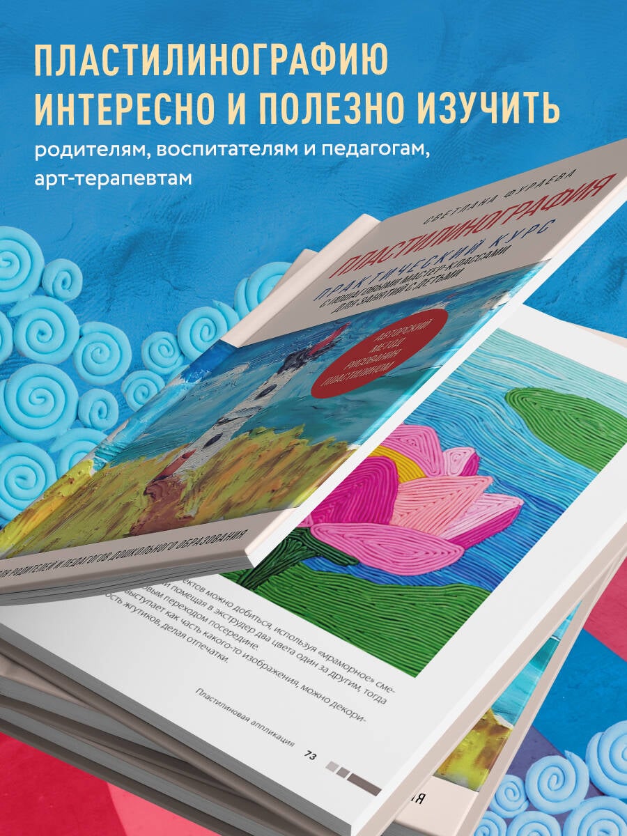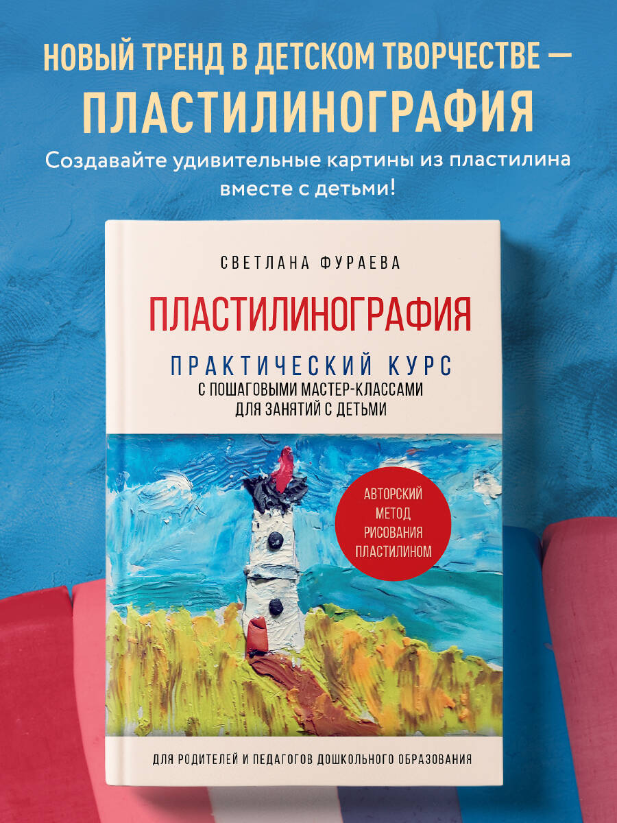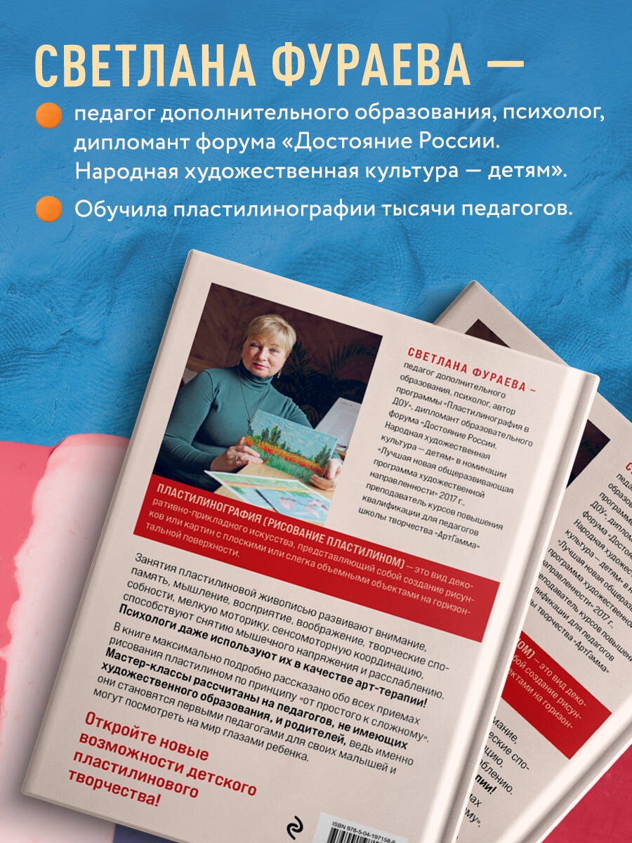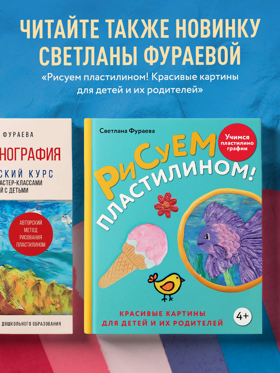 Пластилинография (рисование пластилином) - это создание рисунков или картин с плоскими или слегка объемными объектами на горизонтальной поверхности. Если проще - рисование пластилином. И в наше время этот вид детского творчества на волне популярности! От картины Клода Моне до очаровательной рыбки в аквариуме - многочисленные техники и приемы, и простые, и посложнее, позволяют заниматься пластилинографией и самым маленьким, и подросткам! В помощь преподавателям, воспитателям и, конечно же, родителям, создана эта книга. А еще по ней можно непосредственно заниматься с малышом. Основы цветоведения, техника работы с пластилином, хранение замечательных картин, которые создал ребенок! Множество интересных дизайнов в пошаговых мастер-классах и советы опытного преподавателя, чтобы занятия стали удовольствием, а не рутиной! Новое чудесное увлечение, не просто радостное, но и полезное! Настоящий антистресс, который к тому же развивает художественный вкус, мелкую моторику, координацию движений и дарит удовлетворение результатом. Об авторе: Светлана Фураева - педагог дополнительного образования, психолог, автор программы «Пластилинография в ДОУ», дипломант образовательного форума «Достояние России. Народная художественная культура - детям» в номинации «Лучшая новая общеразвивающая программа художественной направленности» 2017 г., преподаватель курсов повышения квалификации для педагогов школы творчества «АртГамма».| Издательство | ООО "Издательство "Эксмо" |