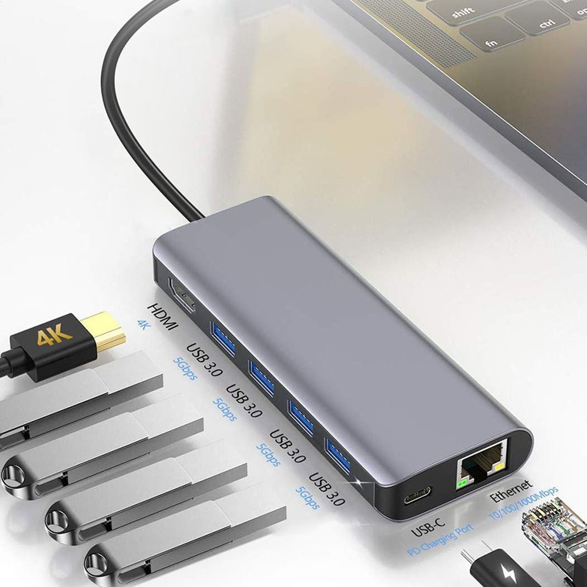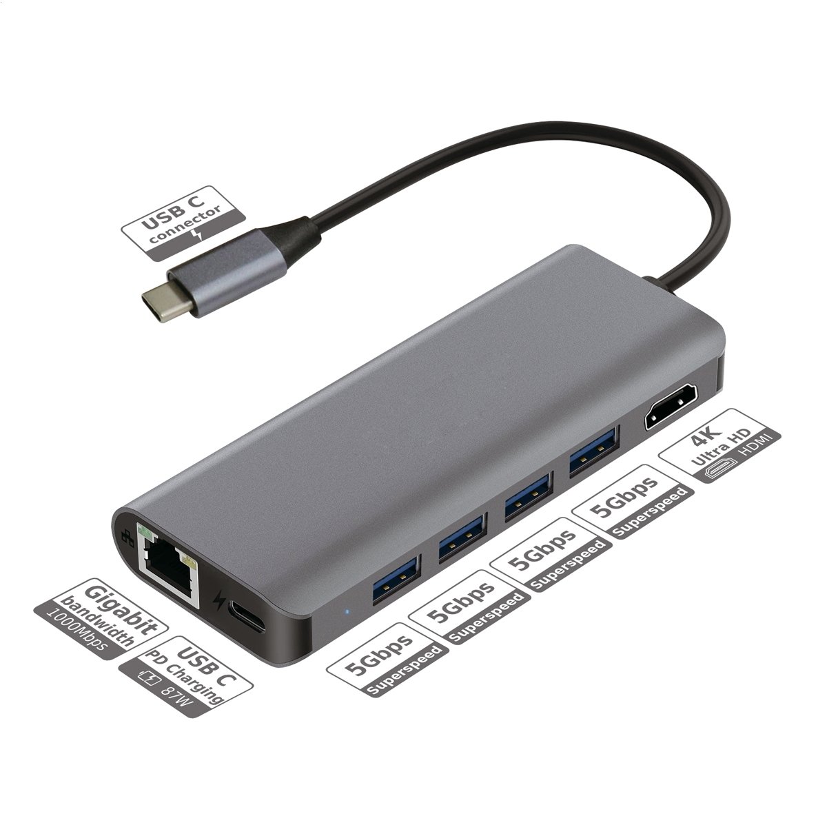 7-портовый адаптер USB-C в алюминиевом корпусе.