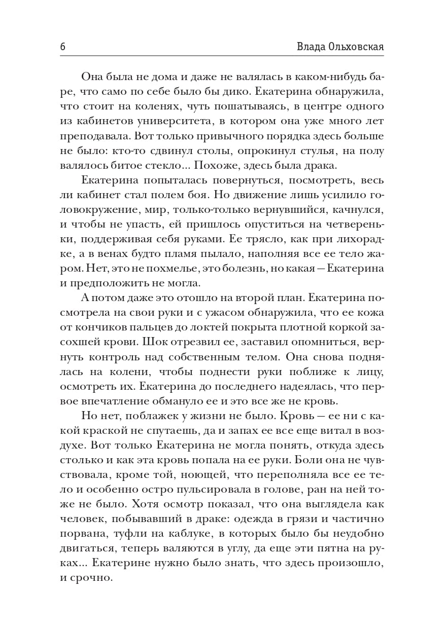 У Екатерины Веренской была прекрасная жизнь: блестящая карьера, любящая семья, планы на будущее. И все это рухнуло, когда она, окровавленная, очнулась возле мертвого тела своей лучшей студентки. Все улики против Екатерины, других подозреваемых в убийстве попросту нет, оправдаться она не может, потому что тот страшный день исчез из ее па-мяти. Даже самые близкие люди не готовы ее поддержать, все они верят, что уважаемая преподавательница лишилась рассудка. Долгие годы Екатерине кажется, что выхода нет, она никогда не найдет того, кто ее подставил. Но внезапно ключом к спасению становится совершенно не знакомая ей девушка, похищенная торговцами внутренними органами и проснувшаяся на хирургическом столе за пару минут до операции.| Издательство | Т8 RUGRAM |