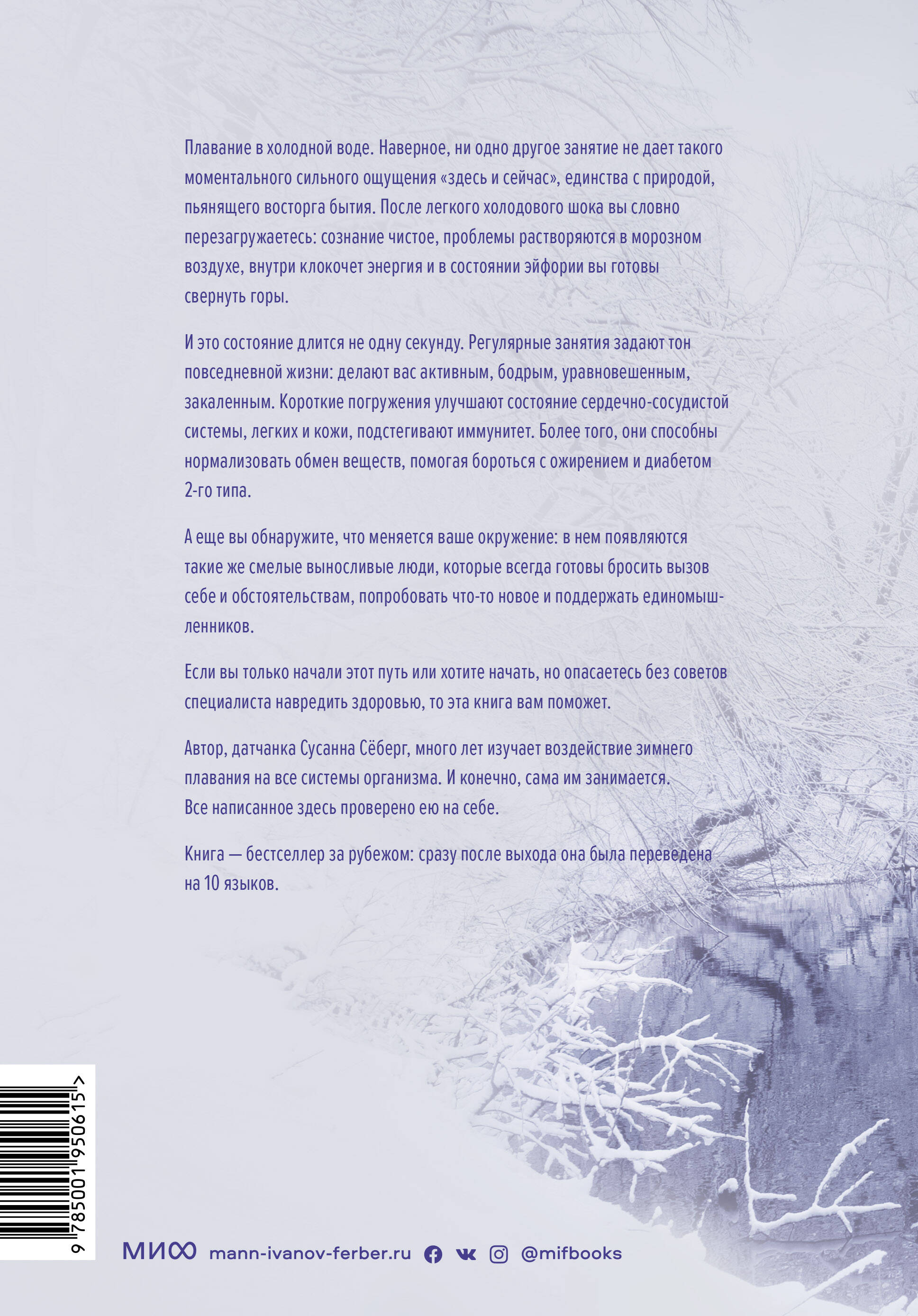 Датский ученый Сусанна Сёберг написала книгу о пользе купания в холодной воде: увлекательное, доступное и красивое руководство, основанное на научных исследованиях. Купание в холодное время года - простой и интересный способ оставаться активным и бодрым. Главное - решимость окунуться в холодную воду и остаться там на какое-то время. Контакт с холодной водой помогает сохранить здоровье и счастье, ощутить баланс и обрести состояние душевного покоя. Близкий контакт с природой чрезвычайно важен, учитывая, что мы живем в сложном и технологически насыщенном мире. Плавание в холодной воде способствует внутреннему спокойствию и психической гигиене. А ещё холодная вода полезна не только для ума, но и для тела, а именно для кровообращения, сердца, легких и кожи, иммунной системы и обмена веществ. Она повышает чувствительность к инсулину и активирует бурый жир, который помогает бороться с заболеваниями, связанными с образом жизни, такими как ожирение и диабет 2-го типа, а также помогает облегчить боль и усиливает защиту от инфекционных заболеваний и атеросклероза. Плавание в холодной воде задаст тон вашей повседневной жизни, и положительный эффект вы ощутите довольно скоро. Сусанна Сёберг рассказывает, как подготовиться к первому погружению, и подробно описывает преимущества зимнего плавания для ментального и физического здоровья. Эта книга поможет понять, почему датчане, шведы и норвежцы - одни из самых счастливых людей на земле. Книга стала бестселлером в Дании, за 1,5 года продано более 10 тыс. экземпляров. Для кого эта книга: Для тех, кому нужно встряхнуться и перезагрузиться. Для тех, кто хочет закалить тело и дух. Для тех, кто бросает себе вызов. От автора: В наши дни зимним плаванием занимаются и молодые, и зрелые люди, мужчины и женщины. Ощущение приятного опьянения, легкости дыхания и единства с природой кажется умиротворяющим и удовлетворяющим для всех. Зимние пловцы, с которыми мне доводилось общаться, как ветераны, так и новички, говорят о том, как им удается отвлечься от неприятных мыслей и сконцентрироваться исключительно на происходящем здесь и сейчас: спуске в ледяную воду шаг за шагом без лишних размышлений и ощущения себя частью природы. В такие моменты кажется, что все ваши проблемы исчезают где-то вдали. Шок от холодной воды требует полного внимания от вашего тела и ума, поскольку мозг воспринимает погружение в холодную воду как ситуацию, угрожающую жизни. Чаще всего впечатления в такие моменты описываются как позитивный шок, момент "перезагрузки", в который ваш мозг получает толчок положительной энергии, и вы чувствуете, что готовы ко всему, что может ждать вас в будущем.| Издательство | МАНН, ИВАНОВ И ФЕРБЕР ООО |
