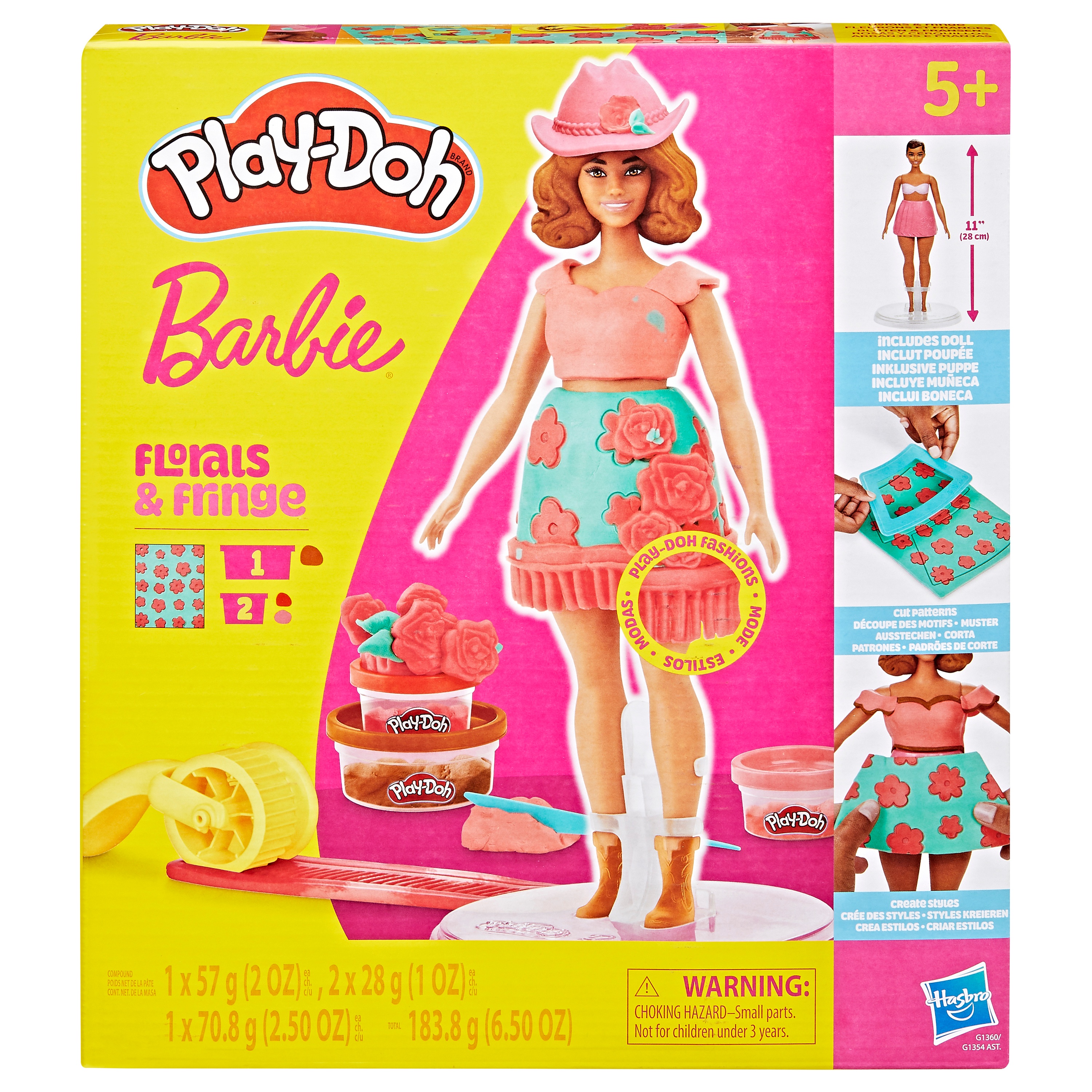 Создавайте очаровательные деревенские образы с набором Барби Цветы и бахрома! Этот творческий набор для лепки позволяет легко и весело создавать одежду для куклы Барби из массы для лепки Play-Doh. Просто установите куклу на подставку, используйте шаблон и формочки для вырезания нарядов Барби и наряжайте её в самые креативные наряды. Сделайте ей разные прически из массы для лепки с помощью молда для волос или создавайте прически вручную. Добавьте аксессуары для Барби, такие как шляпа и сапожки, чтобы завершить образ. В комплект входят 3 баночки массы для лепки Play-Doh, чтобы добавить ещё больше деталей и развивать фантазию. Этот набор станет стильным и оригинальным подарком для детей, которые любят наборы Барби и творческие игры с массой для лепки!