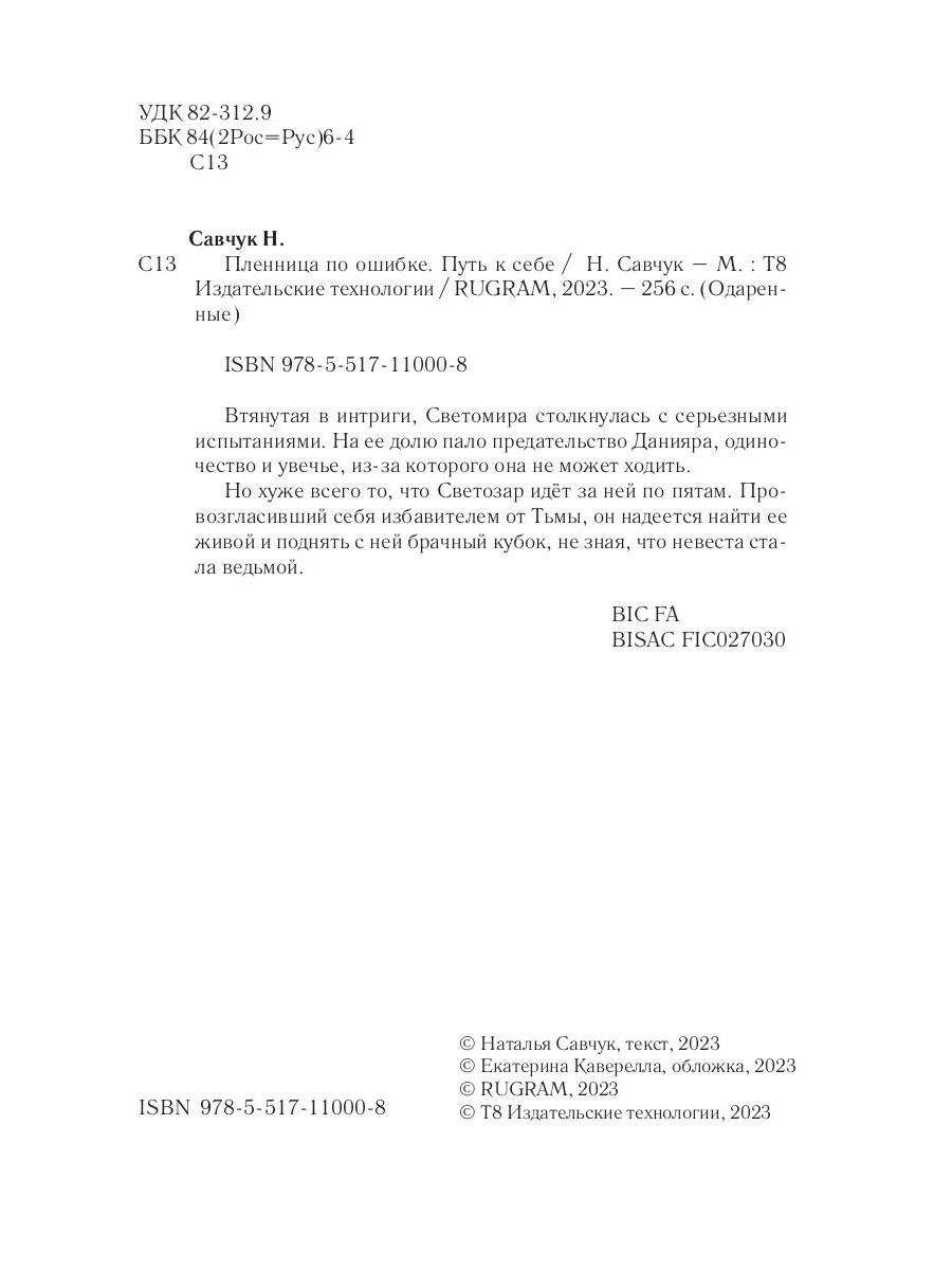 Втянутая в интриги, Светомира столкнулась с серьезными испытаниями. На ее долю пало предательство Данияра, одиночество и увечье, из-за которого она не может ходить. Но хуже всего то, что Светозар идёт за ней по пятам. Провозгласивший себя избавителем от Тьмы, он надеется найти ее живой и поднять с ней брачный кубок, не зная, что невеста стала ведьмой.| Издательство | Т8 RUGRAM |