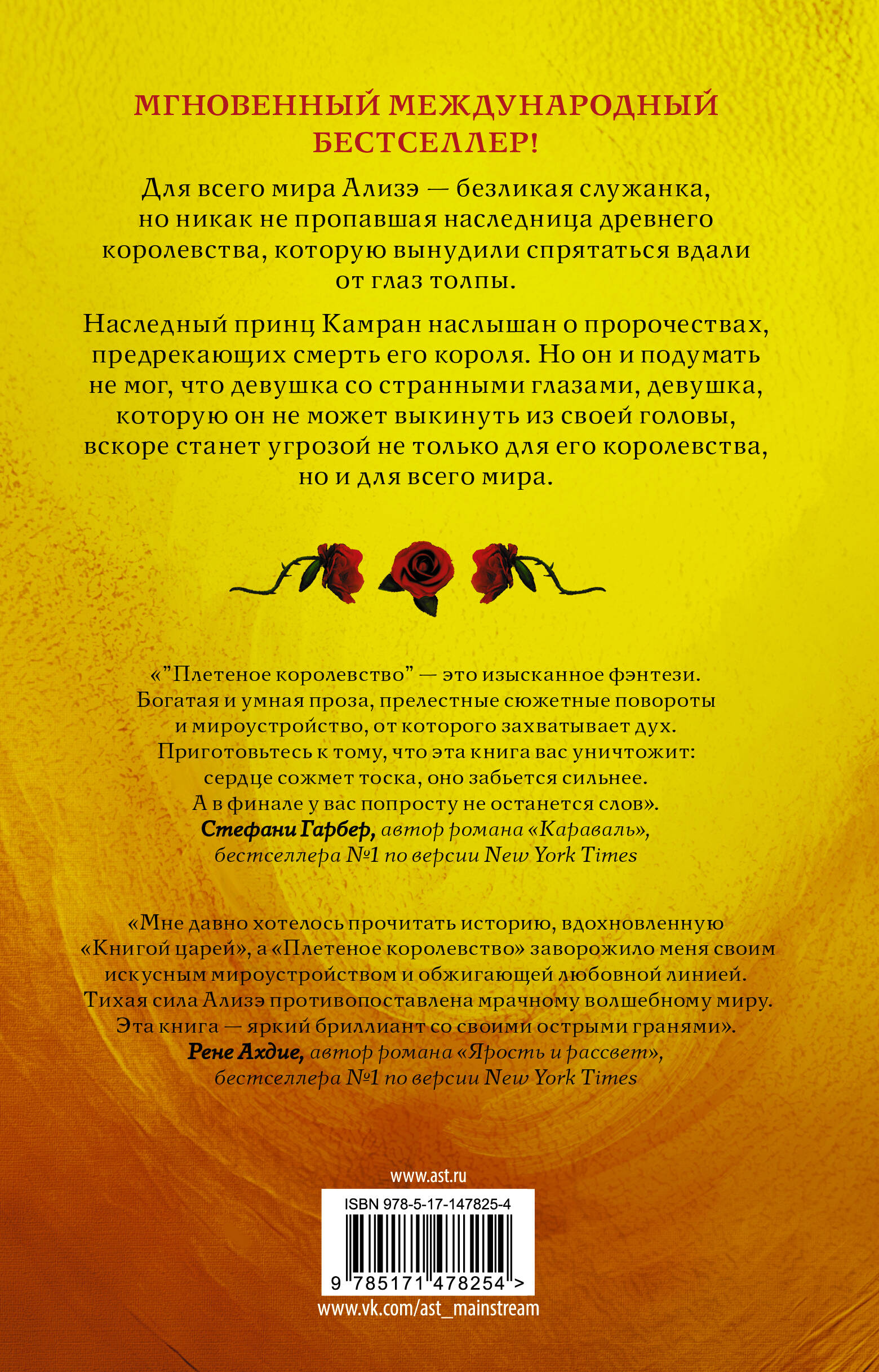 - Мгновенный международный бестселлер по версии New York Times, USA Today и Publishers Weekly! - Тахира Мафи - автор популярного романтического цикла‑антиутопии «Разрушь меня». - Книга понравится фанатам Дженнифер Арментроут, Ли Бардуго, Шелби Махёрин. - «Плетеное королевство» - это изысканное YA-фэнтези с детально продуманным миром, восточным колоритом и обжигающей любовной линией. - Вас ждут богатая и умная проза, прелестные сюжетные повороты и мироустройство, от которого захватывает дух. - «Приготовьтесь к тому, что эта книга вас уничтожит: сердце сожмет тоска, оно забьется сильнее. А в финале у вас попросту не останется слов», - Стефани Гарбер, автор романа «Караваль».| Издательство | Издательство "АСТ" |