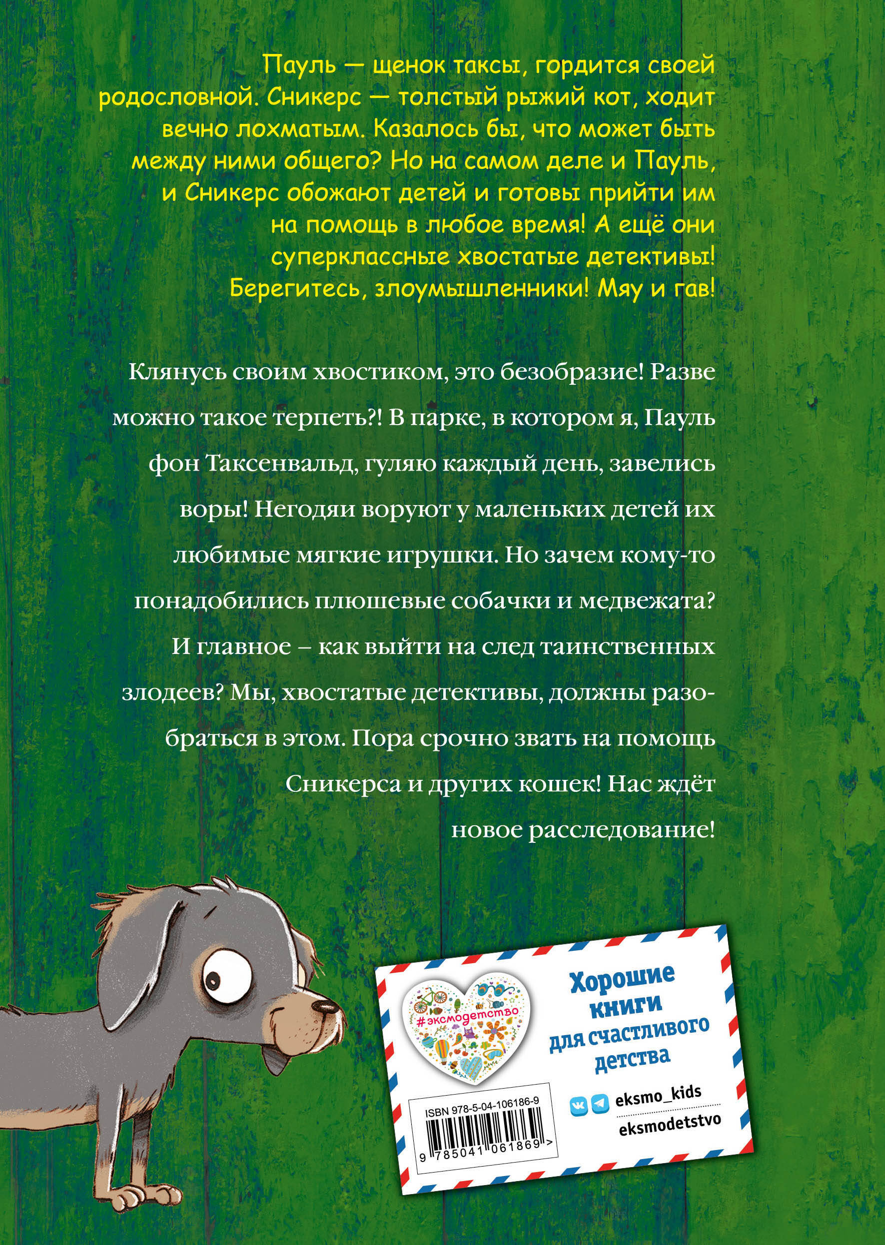 Святая мисочка, ну что за безобразие?! Кто посмел обворовывать маленьких детей?! В парке, в котором я, Пауль фон Таксенвальд, гуляю каждый день, завелись воры. Они совершают ужасно дерзкие преступления: крадут мягкие игрушки у малышей! Но зачем им старые плюшевые собачки? И как выйти на след злодеев? Очевидно, мне и моему другу коту Сникерсу пора приниматься за новое расследование. Берегитесь, воры, от хвостатых детективов ещё никто не уходил! Святая варёная колбаса, какие захватывающие приключения вас ждут! Для скуки не останется места! Фрауке Шойнеманн и Антье Циллат - известные немецкие писательницы, чьи книги обожают дети из разных стран. Они награждены множеством литературных наград и знают, как заинтересовать ребёнка чтением. Это прекрасный детектив, который точно придётся по душе всем любителям серии «Приключения кота-детектива». Внутри вас ждут стильные чёрно-белые иллюстрации, крупный шрифт и плотная бумага - книги специально сделаны так, чтобы их было удобно читать.| Издательство | ООО "Издательство "Эксмо" |