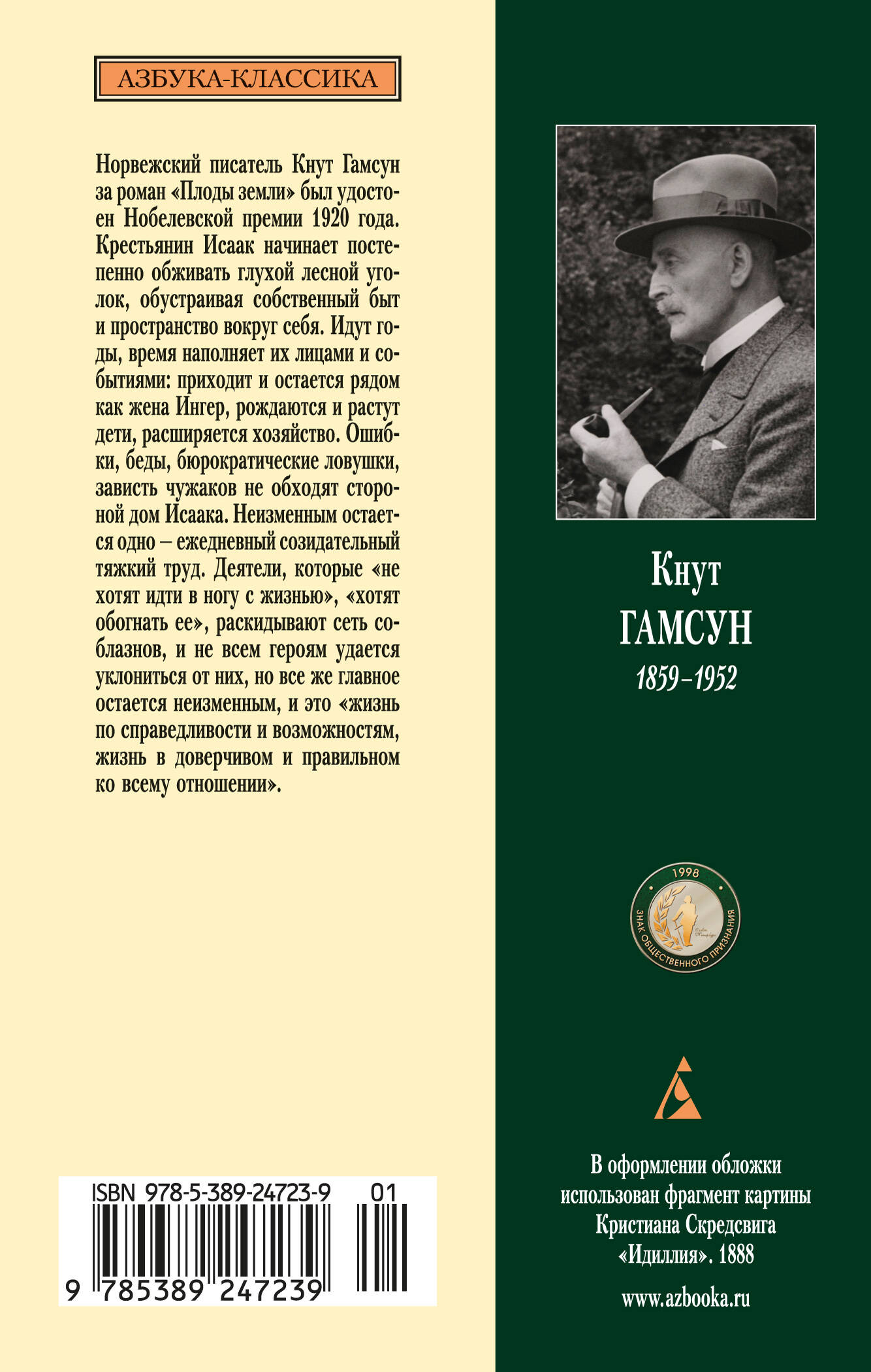 Норвежский писатель Кнут Гамсун (1859-1952) за роман "Плоды земли" был удостоен Нобелевской премии 1920 года. Крестьянин Исаак начинает постепенно обживать глухой лесной уголок, обустраивая собственный быт и пространство вокруг себя. Идут годы, время наполняет их лицами и событиями: приходит и остается рядом как жена Ингер, рождаются и растут дети, расширяется хозяйство. Ошибки, беды, бюрократические ловушки, зависть чужаков не обходят стороной дом Исаака. Неизменным остается одно - ежедневный созидательный тяжкий труд. Деятели, которые "не хотят идти в ногу с жизнью", "хотят обогнать ее", раскидывают сеть соблазнов, и не всем героям удается уклониться от них, но все же главное остается неизменным, и это "жизнь по справедливости и возможностям, жизнь в доверчивом и правильном ко всему отношении".| Издательство | Азбука-Аттикус Издат.группа ООО |