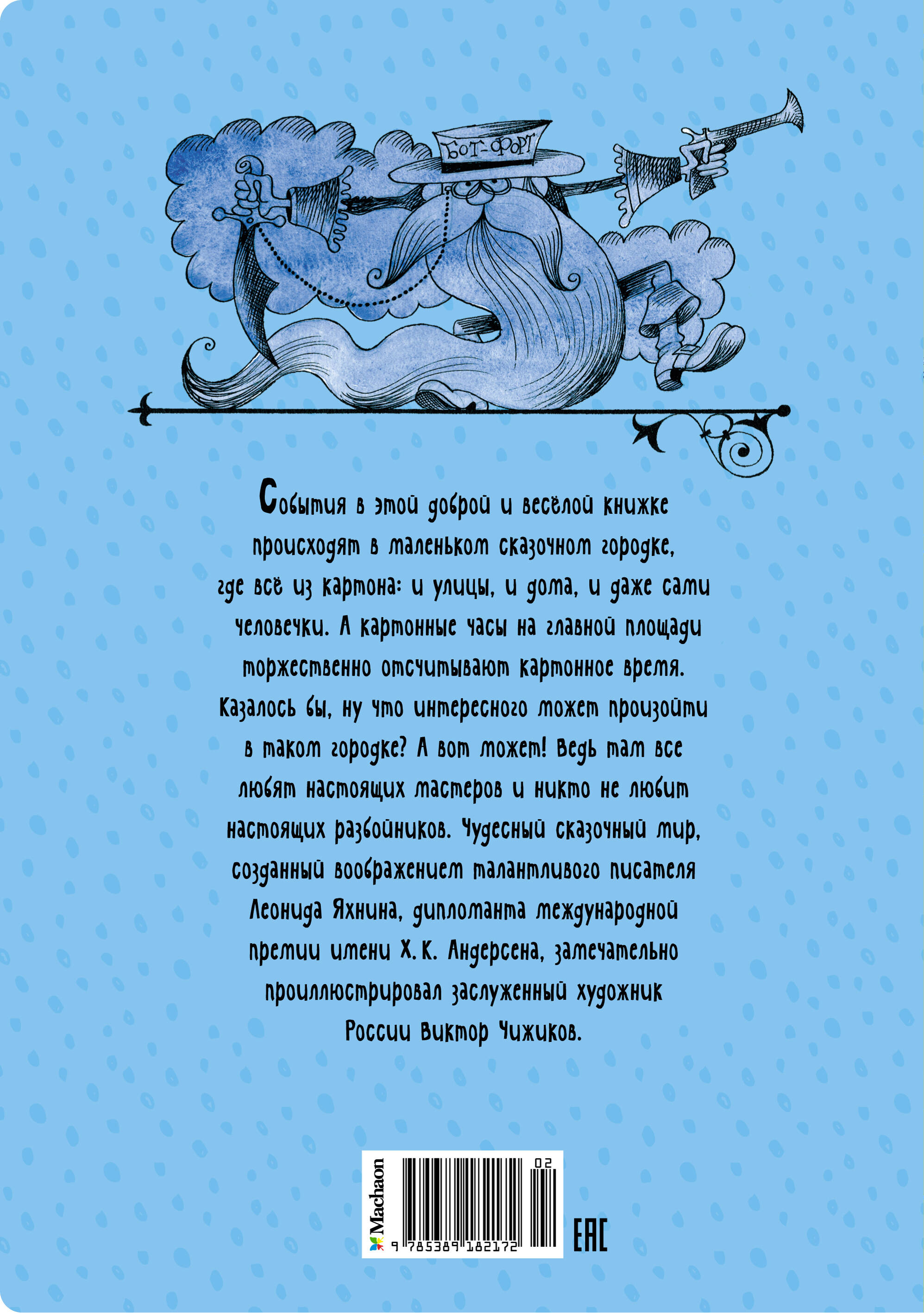 Добрая и весёлая история о приключениях жителей картонного городка, в котором все любят настоящих мастеров и никто не любит настоящих разбойников. Чудесный сказочный мир, созданный воображением талантливого писателя Леонида Яхнина, дипломанта международной премии имени Х.К. Андерсена, замечательно проиллюстрировал заслуженный художник России Виктор Чижиков.| Издательство | Азбука-Аттикус Издат.группа ООО |
