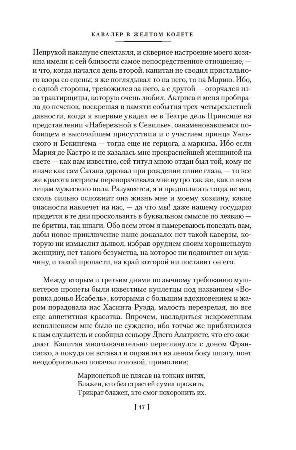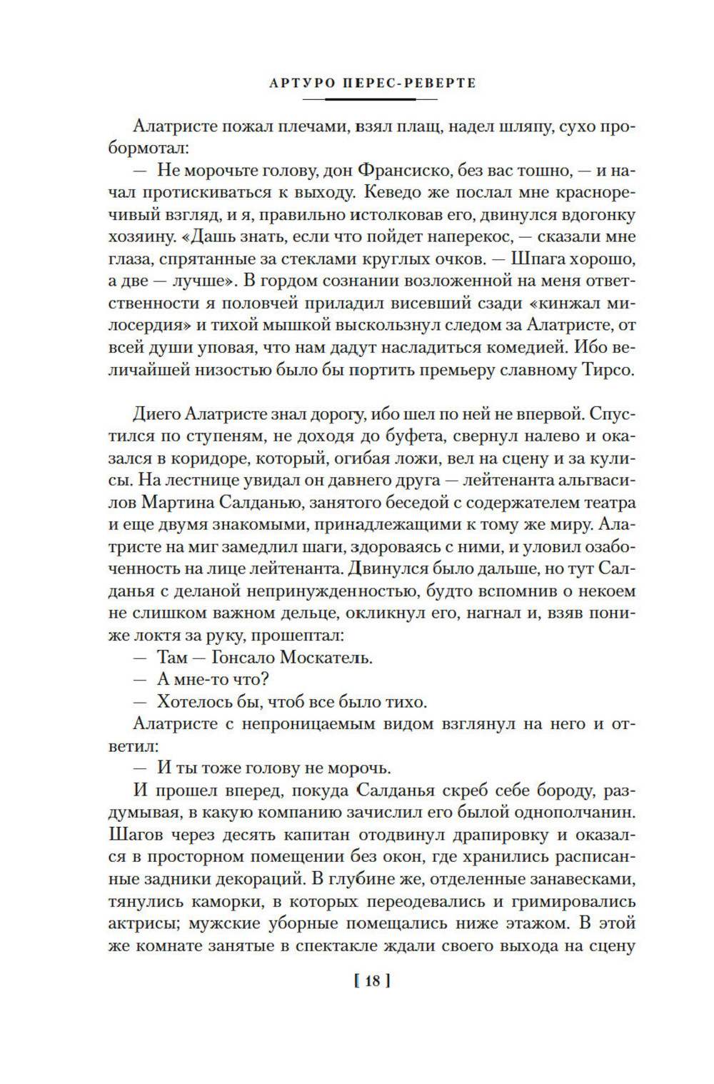 По страницам популярного цикла историко-приключенческих романов Переса-Реверте со шпагой в руке шагает бесстрашный воин армии испанского короля, а в свободное от сражений время дуэлянт, авантюрист, благородный разбойник и наемный убийца, человек чести Диего Алатристе, которого за его неимоверную храбрость называют капитаном. В романах, продолжающих цикл, он все так же балансирует на острие клинка и попадает в опасные ситуации, из которых человек ординарный вряд ли вышел бы живым, - встает на пути злодея, задумавшего преступление века, едва не делается жертвой любви к великой актрисе, бороздит просторы Средиземного моря, сражаясь с турками и пиратами, а в Венеции должен осуществить непростую миссию в привычной роли наемного убийцы. Артуро Перес-Реверте - бывший военный журналист, прославленный автор блестящих исторических, военных, приключенческих, детективных романов, переведенных на сорок языков, обладатель престижнейших литературных наград. Цикл об Алатристе - один из высочайших его литературных взлетов: здесь он блистательно ведет игру на поле, где оставили яркий след такие знаменитые мастера авантюрно-исторического романа, как Александр Дюма, Рафаэль Сабатини, Эмилио Сальгари, и нисколько им не уступает. «Капитан Алатристе, - писал о цикле коллега автора Альберто Монтанер, - удостоился чести стать одним из тех персонажей, что вошли в клуб литературных мифов и навеки поселились в коллективном воображении. Серьезное достижение, если учесть, что испанцев в этом клубе всего ничего: Эль Сид, Дон Жуан да Дон Кихот». В настоящий том вошли пятый, шестой и седьмой романы цикла «Капитан Алатристе»: «Кавалер в желтом колете», «Корсары Леванта» и «Мост Убийц».| Издательство | Азбука |
