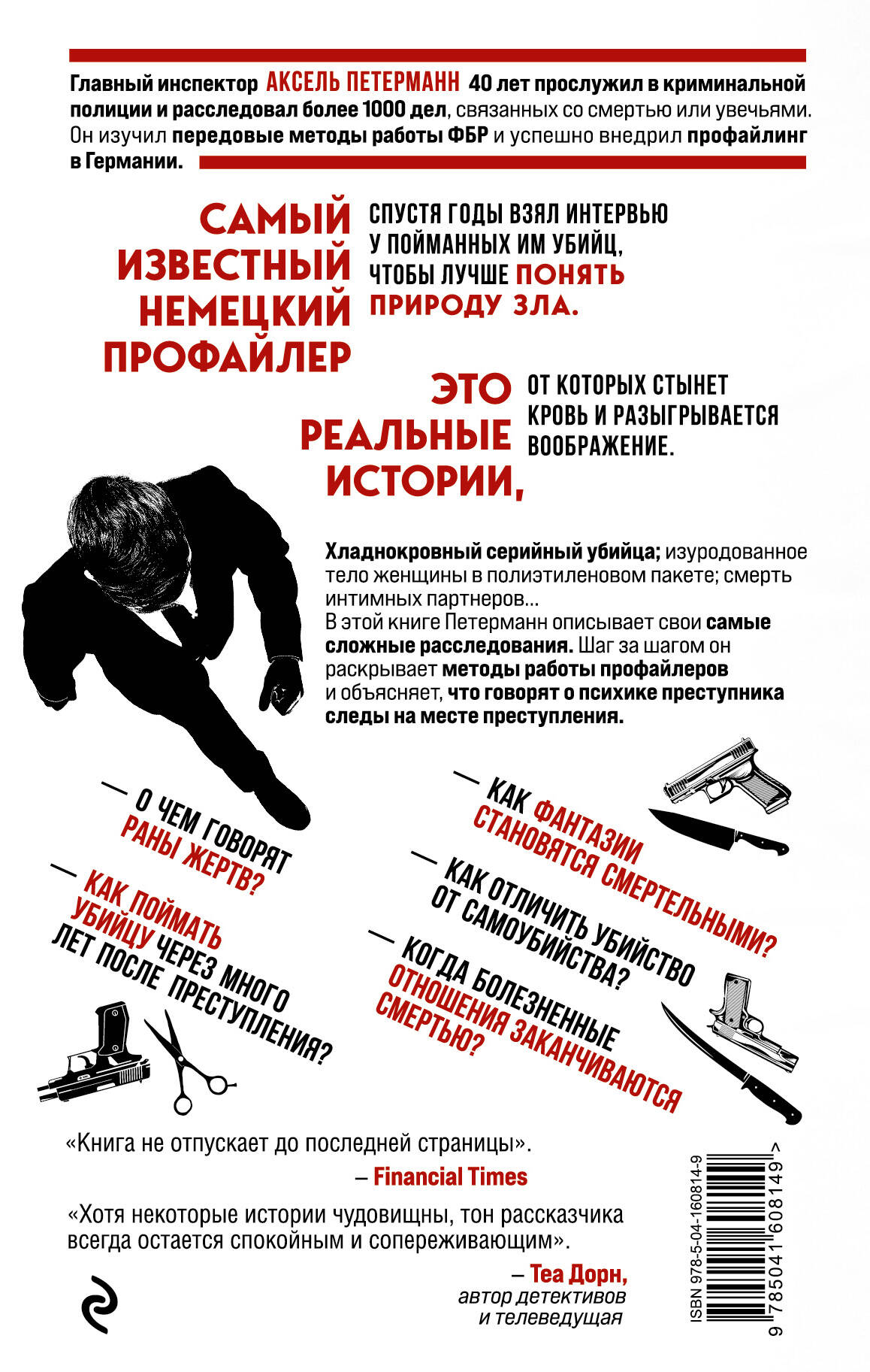 Самый известный немецкий профайлер спустя годы взял интервью у пойманных им убийц, чтобы лучше понять природу зла. Это реальные истории, от которых стынет кровь и разыгрывается воображение. Хладнокровный серийный убийца; изуродованное тело женщины в полиэтиленовом пакете; смерть интимных партнеров… В этой книге Петерманн описывает свои самые сложные расследования. Шаг за шагом он раскрывает методы работы профайлеров и объясняет, что говорят о психике преступника следы на месте преступления. - О чем говорят раны жертв? - Как фантазии становятся смертельными? - Как отличить убийство от самоубийства? - Как поймать убийцу через много лет после преступления? - Когда болезненные отношения заканчиваются смертью? Главный инспектор Аксель Петерманн 40 лет прослужил в криминальной полиции и расследовал более 1000 дел, связанных со смертью или увечьями. Он изучил передовые методы работы ФБР и успешно внедрил профайлинг в Германии. ------------------------------------------------------------------------------------------------------------------------------------------ «Книга не отпускает до последней страницы». - Financial Times «Хотя некоторые истории чудовищны, тон рассказчика всегда остается спокойным и сопереживающим». - Теа Дорн, автор детективов и телеведущая| Издательство | ООО "Издательство "Эксмо" |