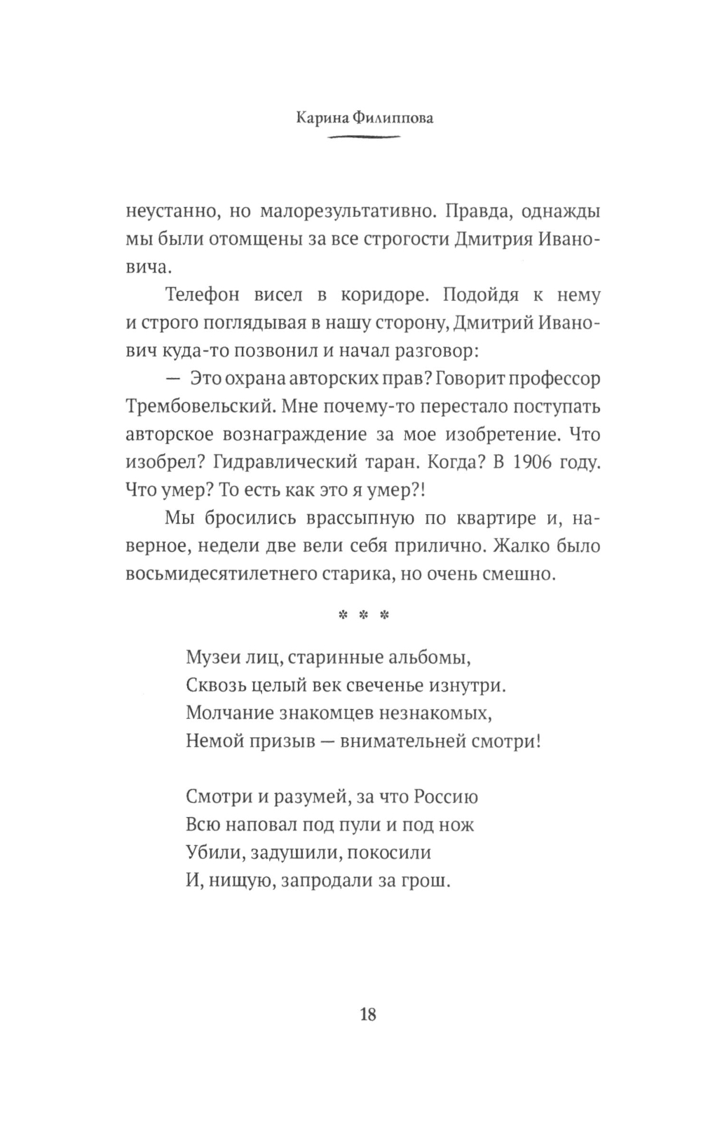 В этой книге замечательной актрисы и известной поэтессы Карины Филипповой собраны воспоминания о друзьях и учителях, которые стали знаковыми фигурами нашей эпохи. Она деликатно раскрывает перед читателями портреты этих выдающихся личностей, придавая им живую глубину и неповторимую характеристику. Помимо этого, в книге содержатся рассказы Карины Филипповой, которые можно назвать своеобразными мини-спектаклями. В каждом из них автор вкладывает столько сердца, души и любви к русскому человеку и родному языку, что слова на бумаге оживают и переносят читателей в моменты, полные эмоций и вдохновения.| Издательство | Блок-Принт |