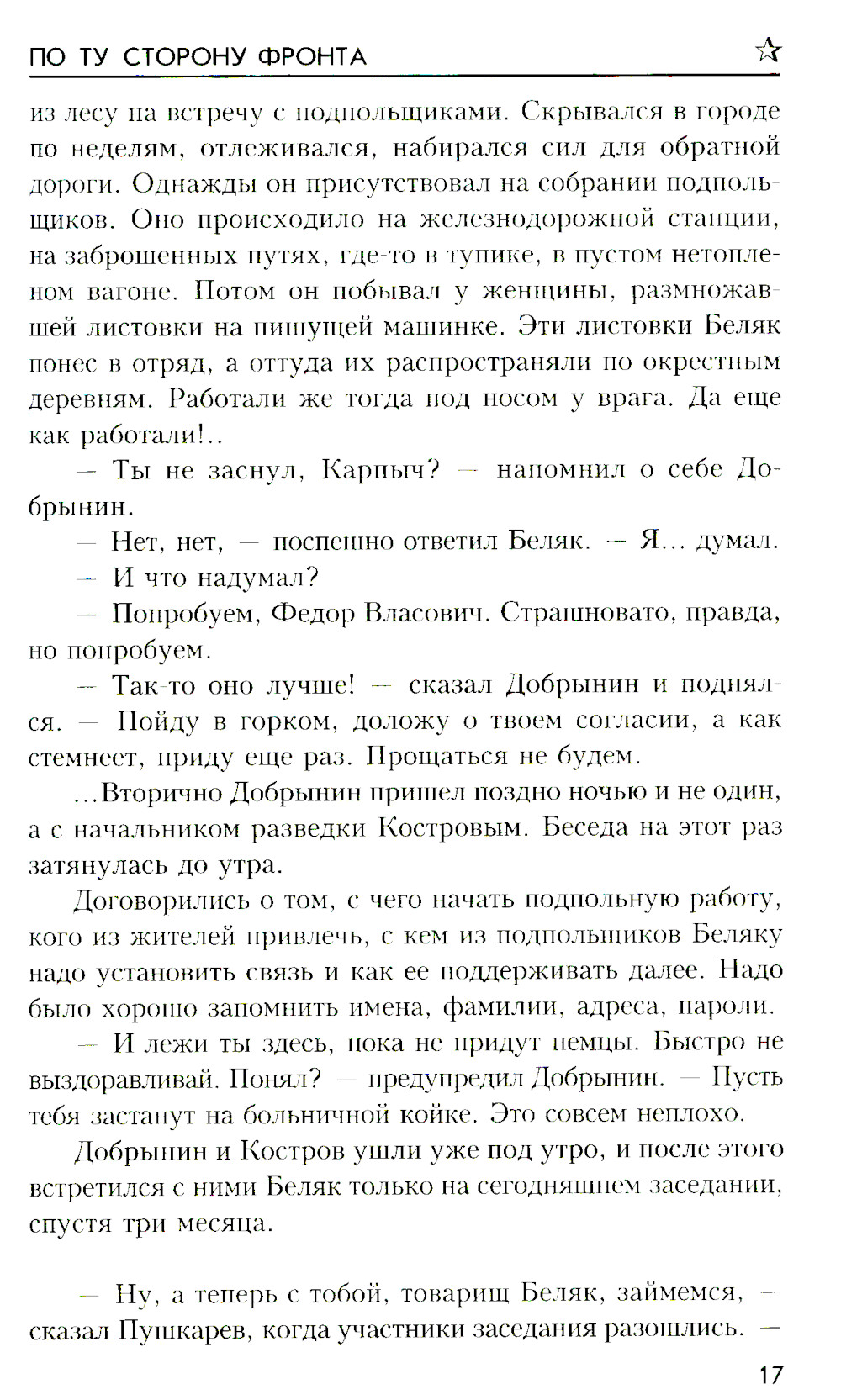 Один из самых популярных авторов военно?приключенческого жанра Г.М. Брянцев (1904-1960) - участник Великой Отечественной войны, военный разведчик, не раз ходивший за линию фронта и сражавшийся бок о бок с народными мстителями против немецко?фашистских захватчиков. Роман «По ту сторону фронта» посвящен всем безвестным героям, сложившим головы за свободу Отчизны в глубоком тылу врага.| Издательство | Вече |
