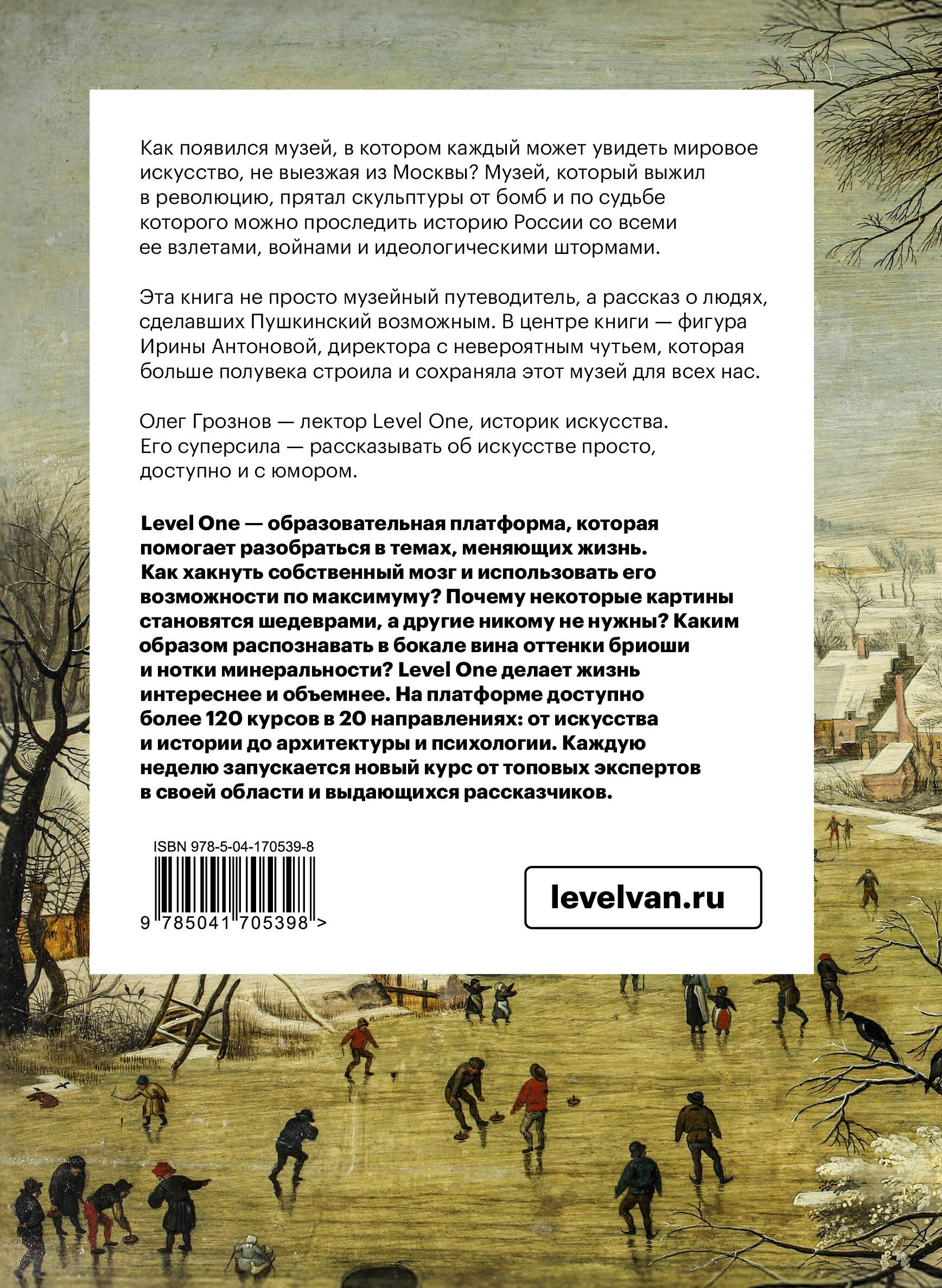 Государственный музей изобразительных искусств имени А.С. Пушкина, более известный как Пушкинский музей, расположен в Москве и является одним из крупнейших музеев изобразительного искусства в России. Музей был основан в 1912 году и предлагает богатую коллекцию произведений искусства, охватывающую разные эпохи и стили - от Древнего Египта и античности до эпохи Возрождения и современного искусства. Книга написана вместе с Level One - крупнейшим лекторием Москвы, который помогает разобраться в сложных темах, от искусства и астрономии до развития памяти и практикумов по стилю. Level One - известный московский лекторий, в котором ежемесячно проходит около 100 лекций на различные темы, от искусства и психологии до физики и астрономии. Лекторы Level One - эксперты в своих областях и замечательные рассказчики, они помогут вам быстро узнать главное в каждой теме. Автор этой книги - Олег Грознов, лектор Level One, историк искусства, автор научных и популярных статей по истории кинематографа и архитектуры.| Издательство | ООО "Издательство "Эксмо" |