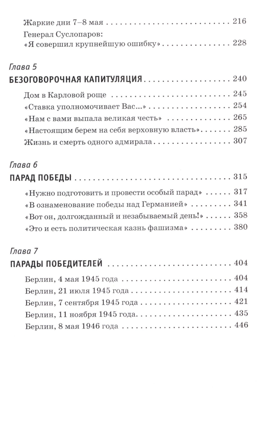 Победа СССР в Великой Отечественной войне неизбежно всегда будет оставаться в центре внимания. Со временем наше отношение к Победе стало более зрелым, постепенно уходят политические трактовки и наслоения, терпят крах упорные попытки различных политических сил присвоить Победу себе. Но объективная реальность свидетельствует День Победы - это единственный реально общенациональный праздник в нашей стране, который объединяет всех.Данная книга посвящена Победе, но охватить все ее аспекты невозможно. Но мы можем совершенно точно определить тот момент, когда Победа наступила когда враг сложил оружие, прекратил сопротивление, когда он признал свое поражение. Именно вокруг этого факта - подписания капитуляции немецких войск, знаменовавшей Победу над Германией, - и строится повествование этой книги. И конечно же, самое зрелищное воплощение Победы - воинский парад в ее честь. На основе исторических фактов и документов, воспоминаний очевидцев мы постараемся восстановить события 80-летней давности, рассмотреть все аспекты и нюансы, сопровождавшие их.Книга будет интересна всем, кого волнует история нашей страны, история Великой Отечественной войны, история нашей Победы.| Издательство | Молодая гвардия |