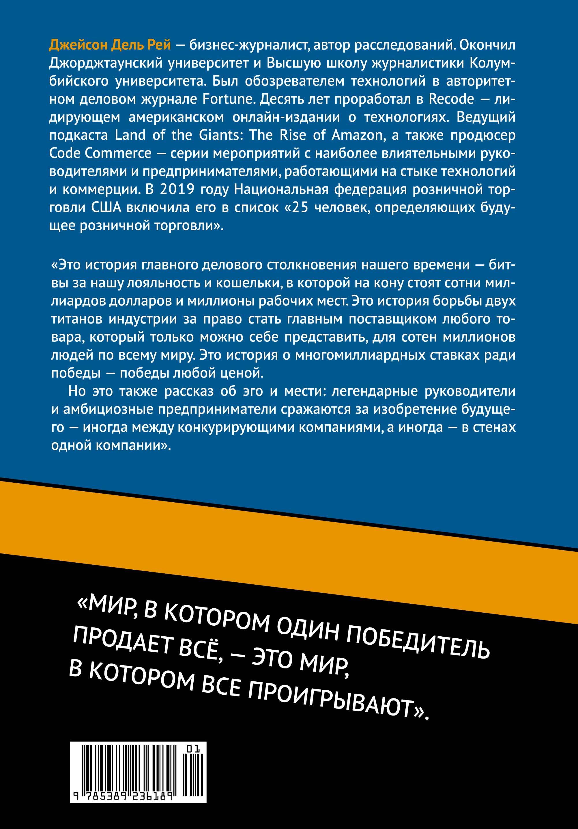 В течение многих лет компании Walmart и Amazon работали в разных сферах: одна была крупнейшим физическим ретейлером, другая - онлайн-гигантом. Но в 2016 году Walmart агрессивно вторглась в мир электронной коммерции, а Amazon сделала ставку на физическую розничную торговлю. Это противостояние вылилось в беспощадную схватку за власть, в которой каждый титан пытается уничтожить другого, чтобы стать крупнейшим омниканальным ретейлером - "продавцом всего" - в мире. Мелкий бизнес и рядовые потребители сталкиваются с негативными последствиями этой борьбы: сокращаются возможности для справедливого ценообразования, семейные магазины разоряются, а миллионы работников вынуждены выполнять сложную, порой опасную работу за мизерную плату. Известный журналист Джейсон Дель Рей расследует главный бизнес-конфликт нашего времени, используя ценную инсайдерскую информацию и свидетельства самих участников конфликта. Книга является ключом к пониманию настоящего и будущего всей мировой розничной торговли.| Издательство | Азбука-Аттикус Издат.группа ООО |