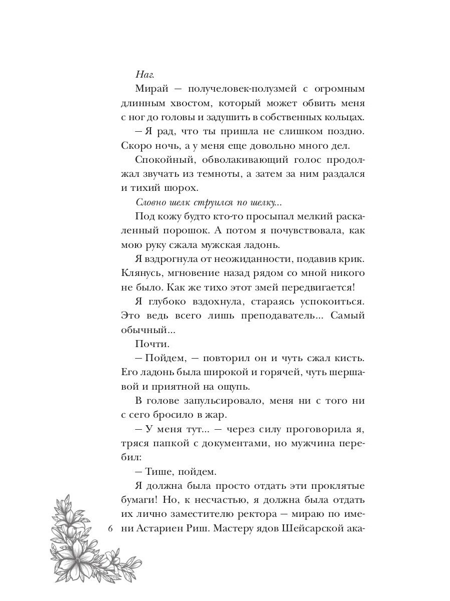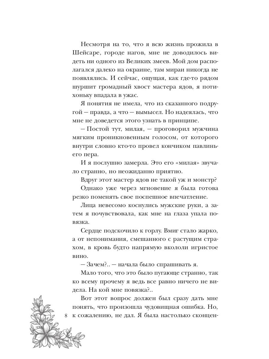 Я думала, что умру, когда в мою шею вошли острые клыки нага. Мало того, что он - один из профессоров моей академии, таинственный мастер ядов и настоящее чудовище. Так говорят, он убил собственного предшественника, чтобы занять его место. А еще его боится сам царь золотой Шейсары. Люди зовут его Багровым змеем. Я думала, что умру, когда в моих венах, словно тлеющее пламя, вспыхнул его яд. Но опаснее отравленного укуса оказался его поцелуй…| Издательство | Т8 RUGRAM |