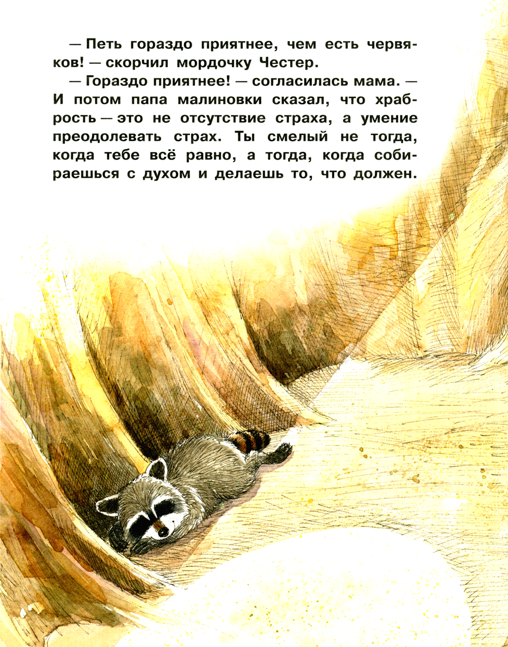 Как любой малыш, енот Честер боится некоторых вещей. А ещё он очень любит слушать сказки. Из маминой сказки Честер узнаёт, что такое храбрость и как побороть страх. Оказывается, есть одно простое правило, которое помогает быть смелым. Какое? Об этом вы узнаете из новой книги о волшебных маминых поцелуях.| Издательство | Качели |