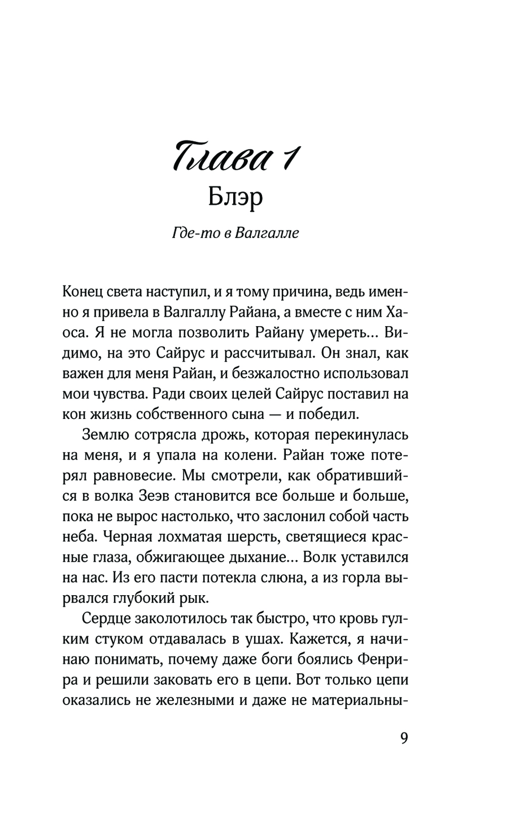 Конец света наступил, и во всем виновата Блэр. Спасая жизнь своему другу Райану, она позволила Хаосу вторгнуться в Вальгаллу и обрекла на гибель всех остальных. Теперь волк Фенрир освободился из оков и сбежал в мир людей, а в Мидгарде появился мировой змей - еще один признак Рагнарёка. Блэр страстно желает все исправить и спасти тех, кто ей дорог. Но, несмотря на недели тренировок, она так и не стала настоящей валькирией. Сможет ли она остановить конец света? И будет ли Райан на ее стороне или же восстанет против нее?