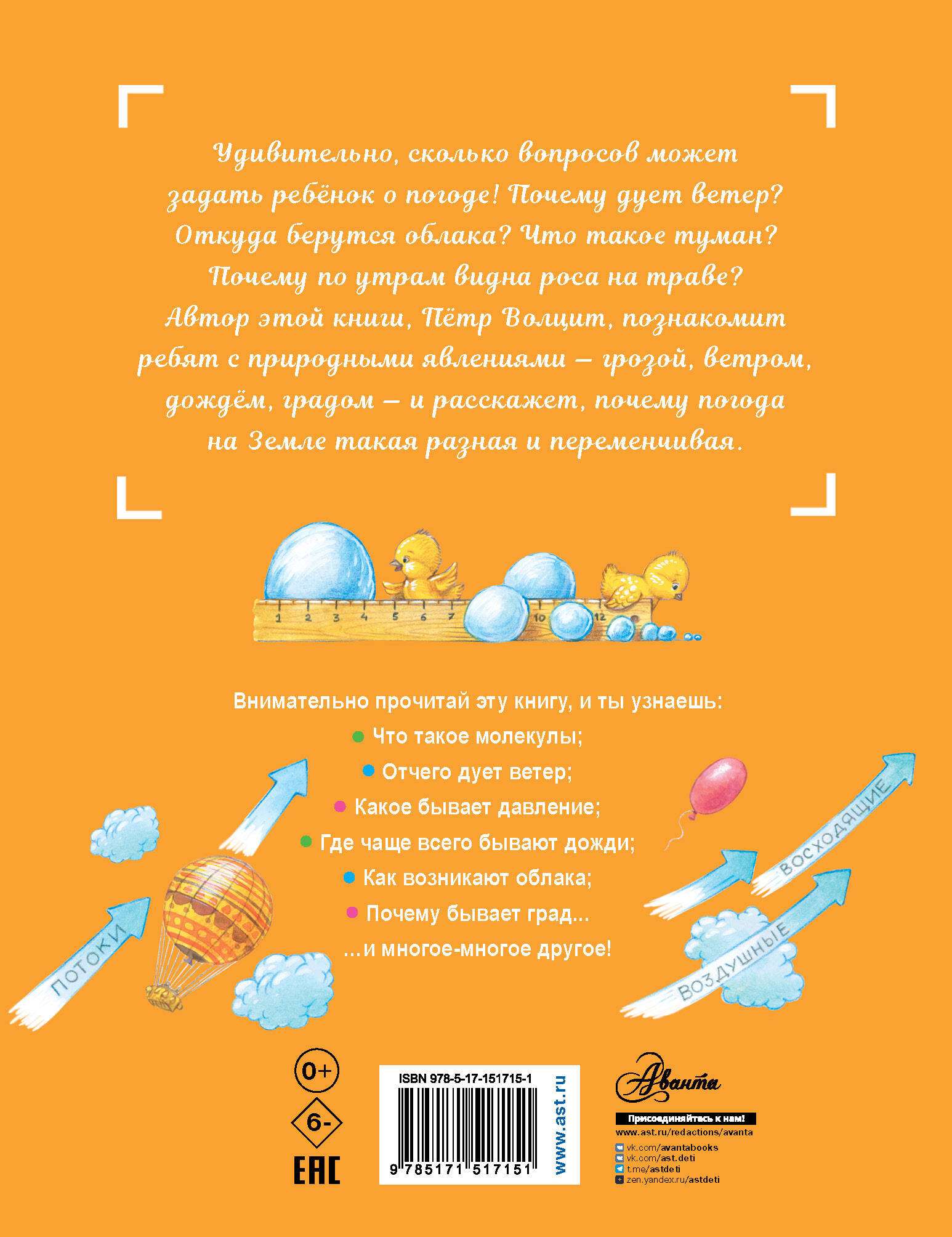Удивительно, сколько вопросов может задать ребёнок о погоде! Почему дует ветер? Откуда берутся облака? Что такое туман? Почему по утрам видна роса на траве? Автор этой книги, Пётр Волцит, познакомит ребят с природными явлениями - грозой, ветром, дождём, градом, и расскажет, почему погода на Земле такая разная и переменчивая. Для младшего школьного возраста.
