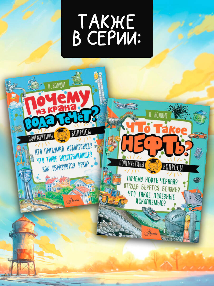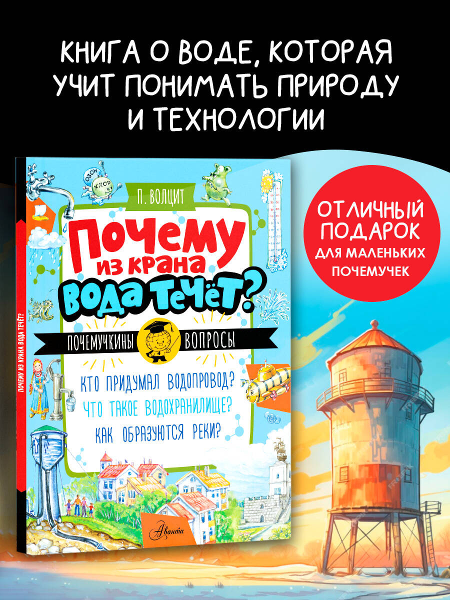Наш Почемучкин всегда готов поделиться знаниями. В книге "Почему вода из крана течёт?" он расскажет ребятам о воде и водных сооружениях: родниках, колодцах, скважинах, каналах, поможет разобраться, как устроен современный водопровод, и даже подскажет, как починить капающий кран! Для младшего школьного возраста.| Издательство | Издательство "АСТ" |