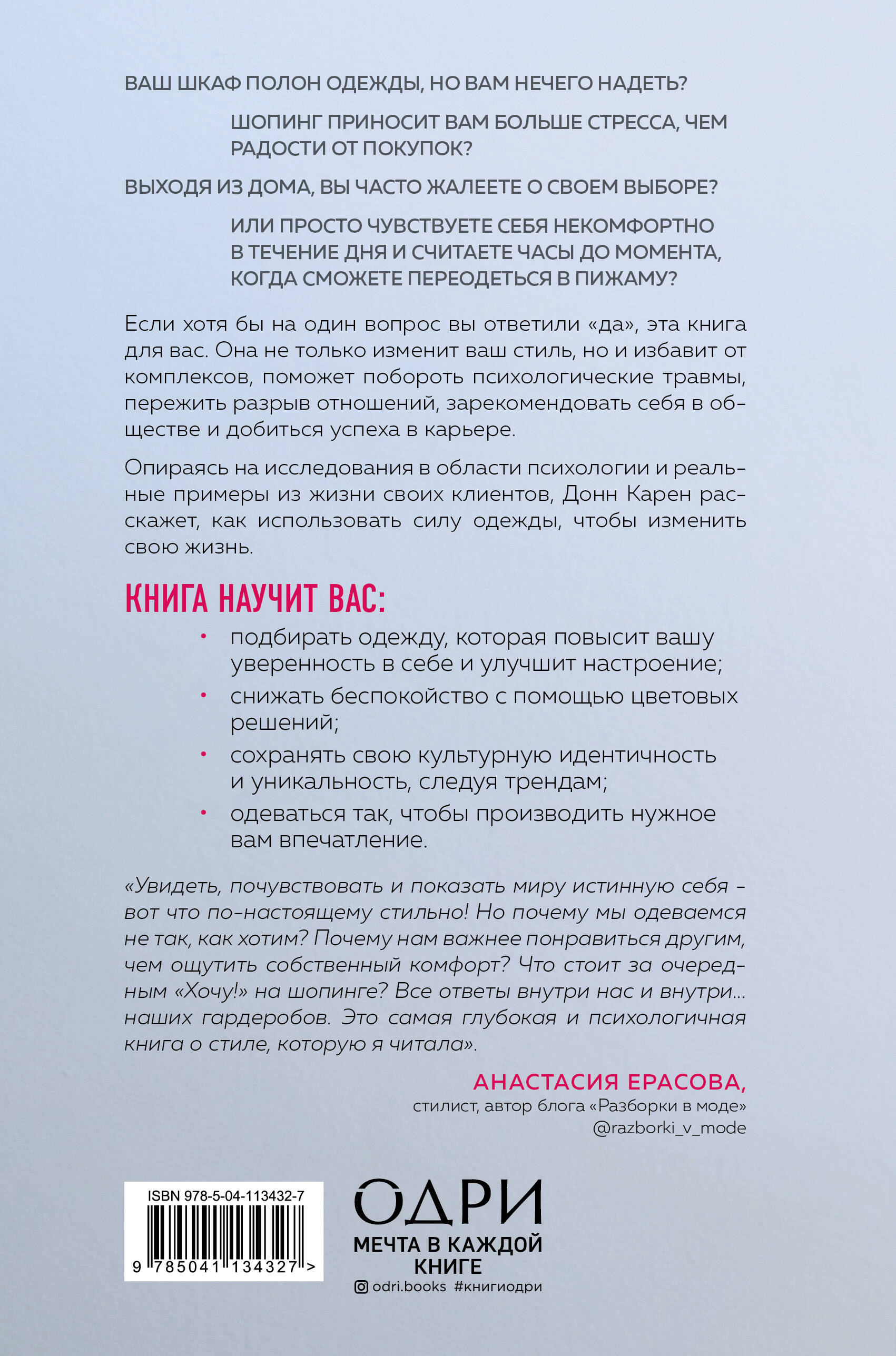Ваш шкаф полон одежды, но вам нечего надеть? Шопинг приносит вам больше стресса, чем радости от покупок? Выходя из дома вы часто жалеете о своем выборе? Или просто чувствуете себя некомфортно в течение дня, и считаете часы до момента, когда сможете переодеться в пижаму? Если хотя бы на один вопрос вы ответили «да», эта книга для вас. Она изменит не только ваш стиль, но и избавит от комплексов, поможет побороть психологические травмы¸ пережить разрыв отношений, зарекомендовать себя в обществе и добиться успеха в карьере. Опираясь на исследования в области психологии и реальные примеры из жизни своих клиентов, Донн Карен расскажет, как использовать силу одежды, чтобы изменить свою жизнь. Книга научит вас: - подбирать одежду, которая повысит вашу уверенность в себе и улучшит настроение; - снижать беспокойство с помощью цветовых решений; - сохранять свою культурную идентичность и уникальность, следуя трендам; - одеваться так, чтобы производить нужное вам впечатление. Донн Карен - американский психолог, основоположница и ведущий эксперт в области фэшн-психологии. Бывшая модель, дизайнер и PR-специалист в индустрии моды. Преподает в нью-йоркском Технологическом институте моды, а также ведет собственную психотерапевтическую практику.| Издательство | ООО "Издательство "Эксмо" |