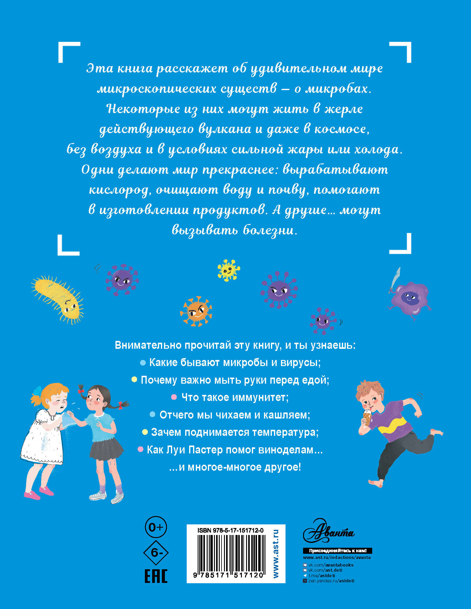 Книга популяризатора науки Анастасии Мещеряковой "Почему мы болеем?" расскажет об удивительном мире микроскопических существ - о микробах и вирусах, которые окружают нас повсюду. Некоторые микробы оказались полезными, а некоторые - то и дело стараются навредить. К счастью, наш организм обладает совершенной системой защиты от болезнетворных микробов и вирусов - иммунитетом. Зачем вообще нужны бактерии и вирусы, как они устроены, каким образом организм борется с ними, для чего мы кашляем, почему повышается температура - ответы на эти и многие другие вопросы ты найдёшь в нашей книге. Для младшего школьного возраста.| Издательство | ИЗДАТЕЛЬСТВО "АСТ" |