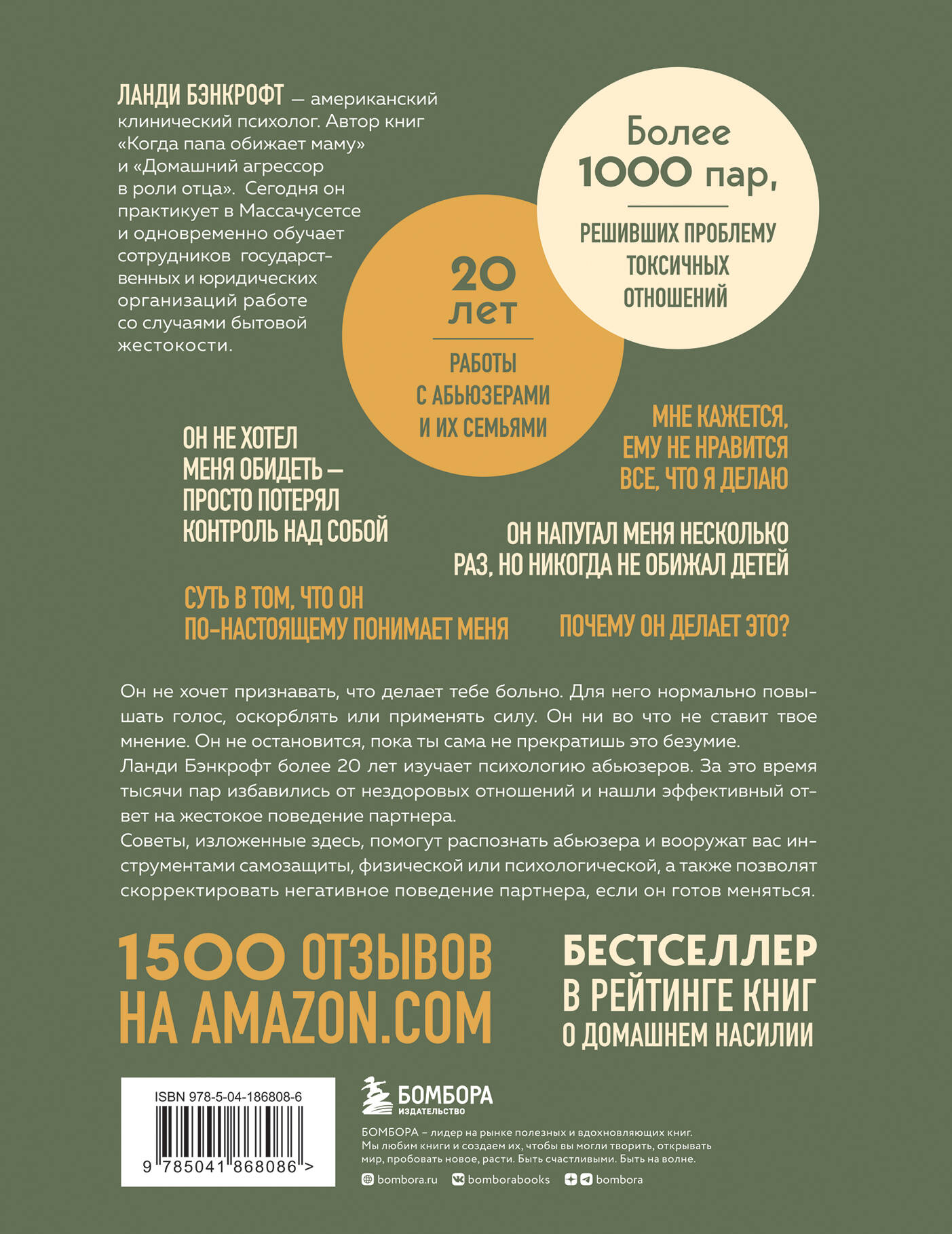 Ланди Бэнкрофт - американский клинический психолог. Автор книг «Когда папа обижает маму» и «Домашний агрессор в роли отца». Автор более 20 лет изучает психологию абьюзеров. За это время тысячи пар избавились от нездоровых отношений и нашли эффективный ответ на жестокое поведение партнера. Сегодня он практикует в Массачусетсе и одновременно обучает сотрудников различных государственных и юридических организаций работе со случаями бытовой жестокости. В этой книге вы встретите жестоких мужчин всех сортов - от тех, кто никогда не прибегал к физическому насилию, до тех, кто вызывает откровенный ужас. Поведение жестоких личностей всех типов произрастает из одних и тех же корней и движимо одним и тем же мышлением. Советы, изложенные здесь, помогут распознать абьюзера и избежать нездоровых отношений.| Издательство | ООО "Издательство "Эксмо" |